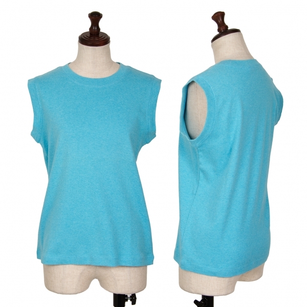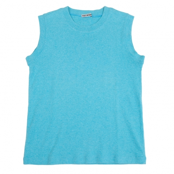 | イッセイミヤケISSEY MIYAKE コットンクルーネックタンクトップ 水色M |