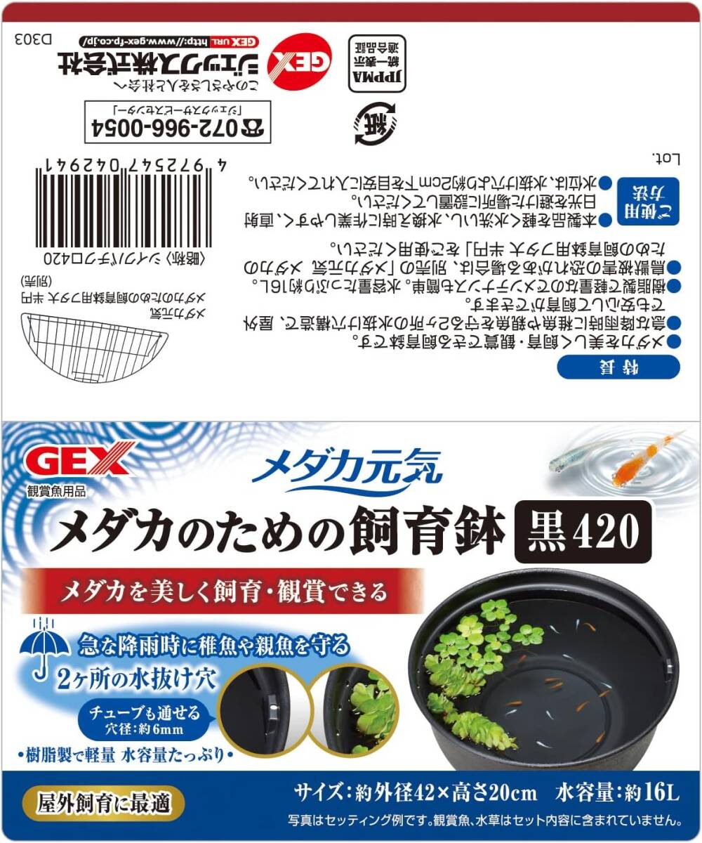 GEX メダカ元気 メダカのための飼育鉢 黒 420