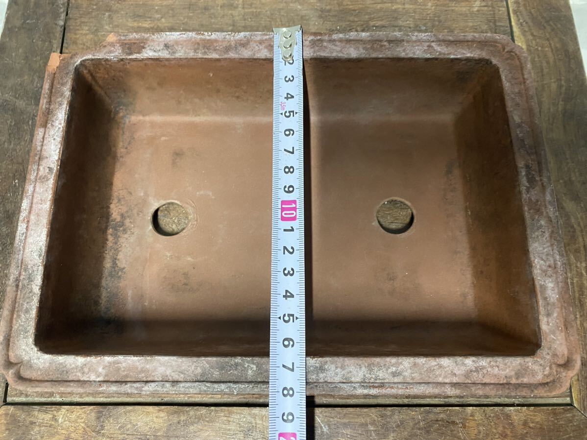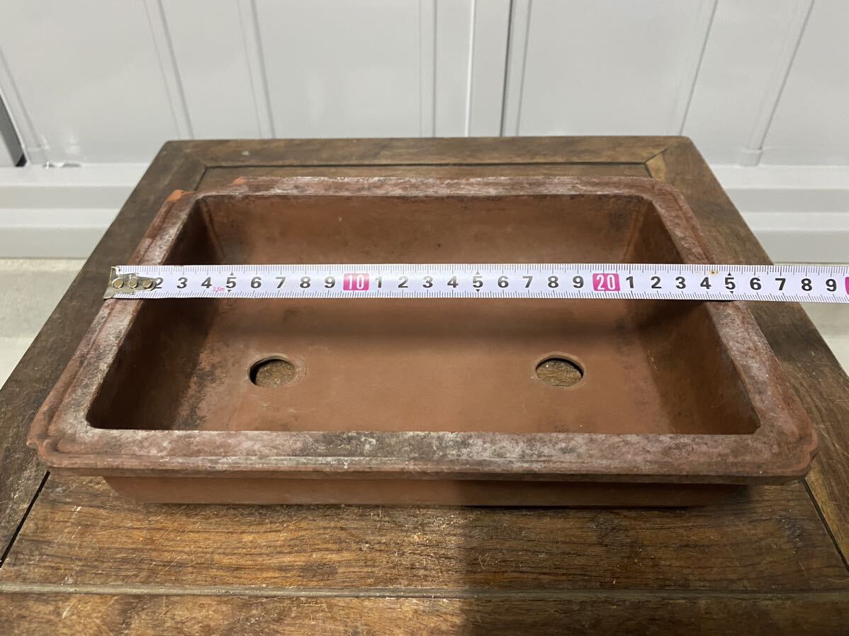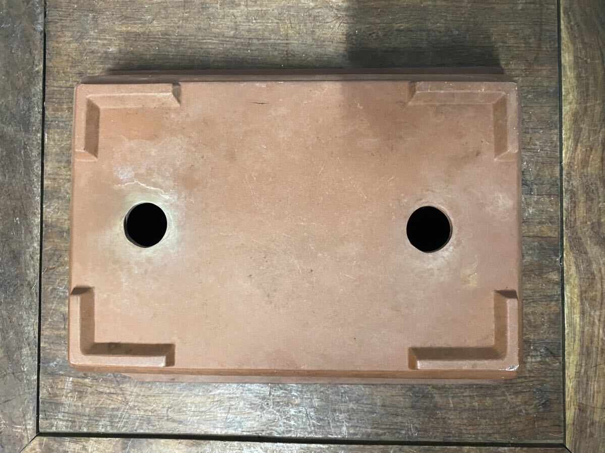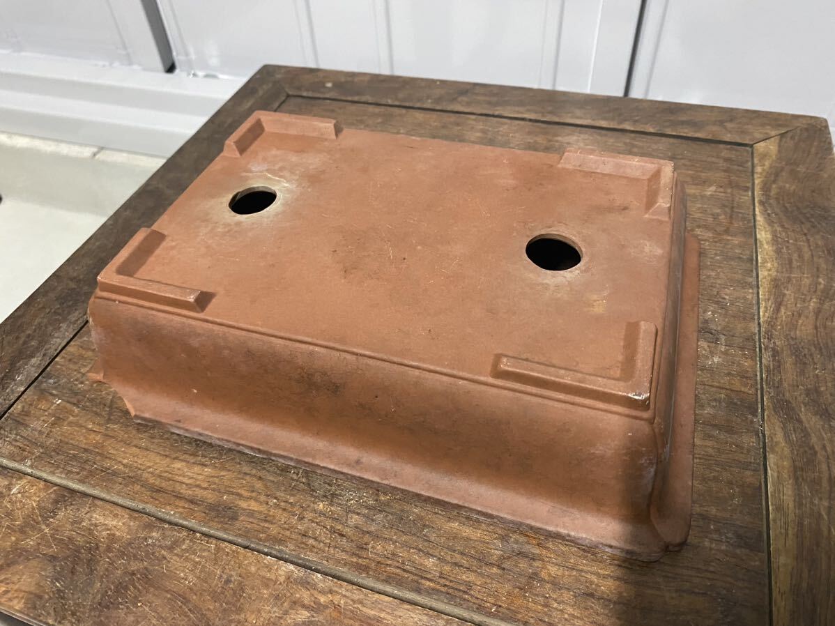 長方で朱泥の小品盆栽鉢です。