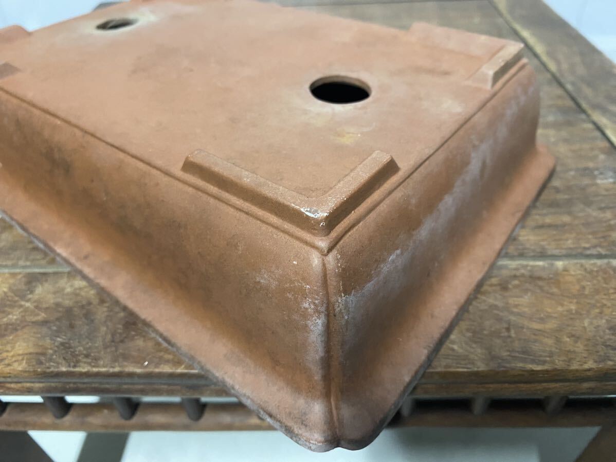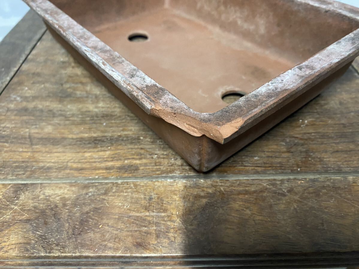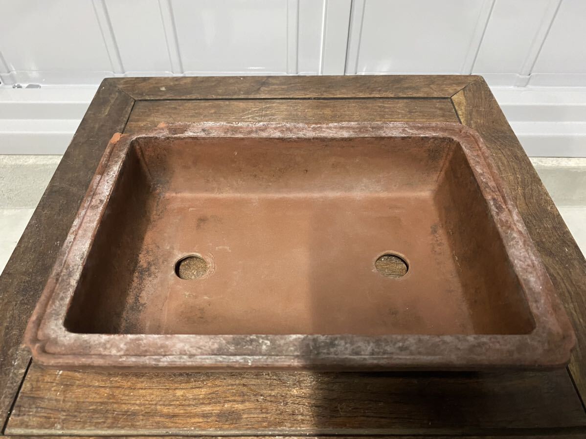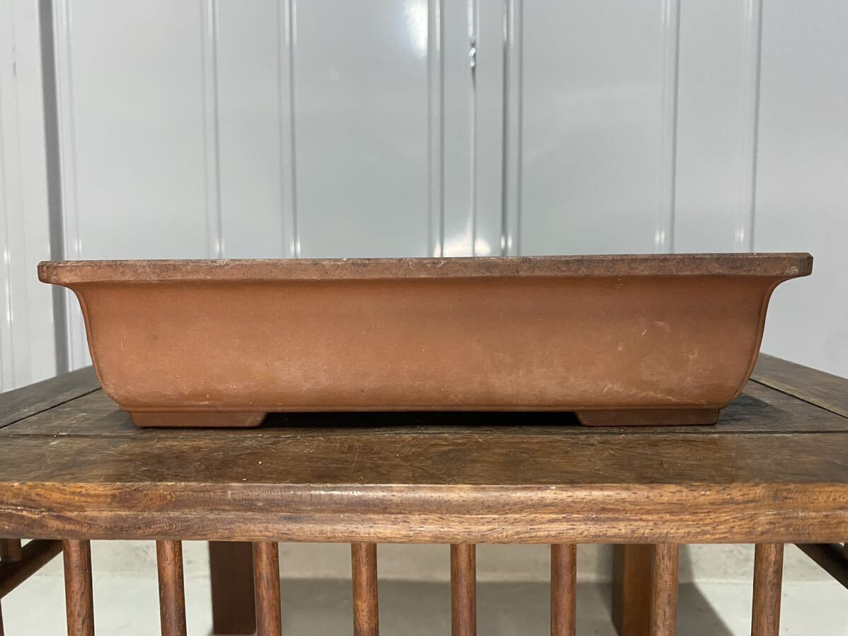 長方で朱泥の小品盆栽鉢です。