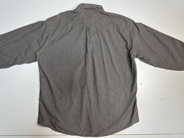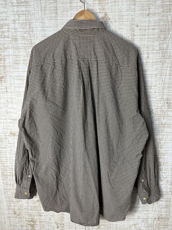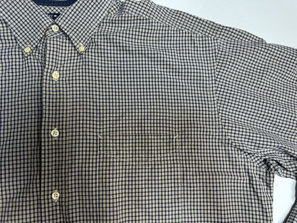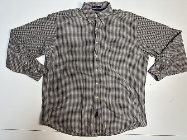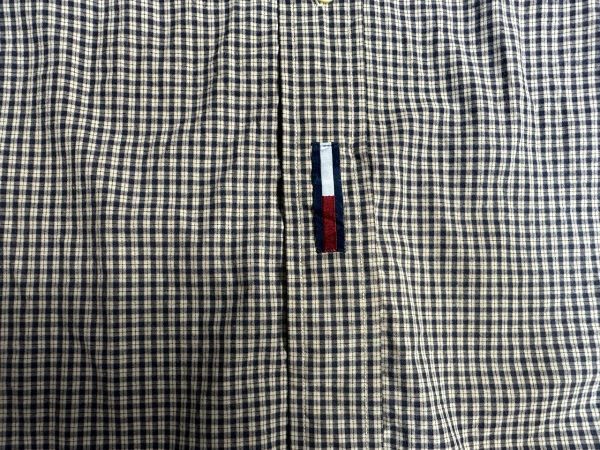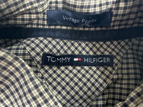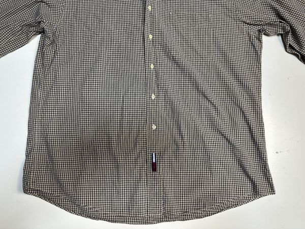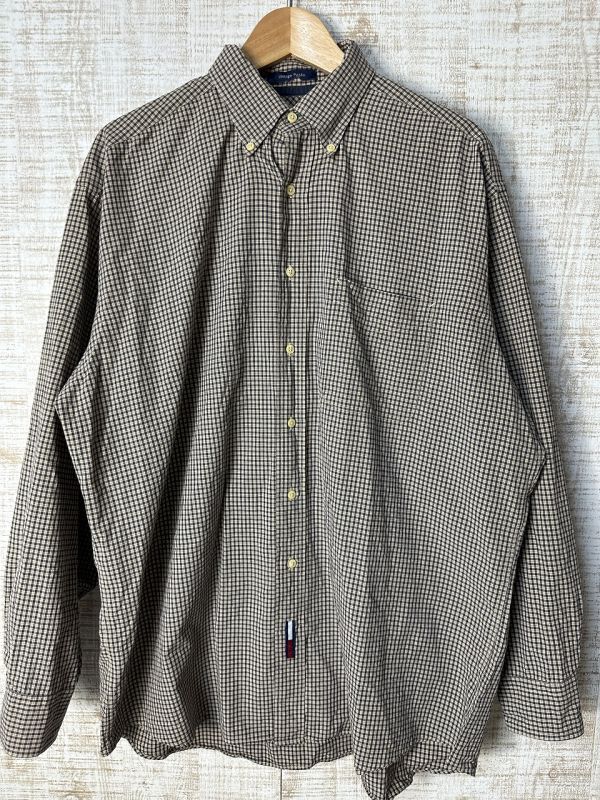 ●US USED ビッグサイズ US古着 TOMMY HILFIGER トミーヒルフィガー 綿シャツ 長袖 チェック柄 ベージュ×ネイビー紺【XLくらい】コットン