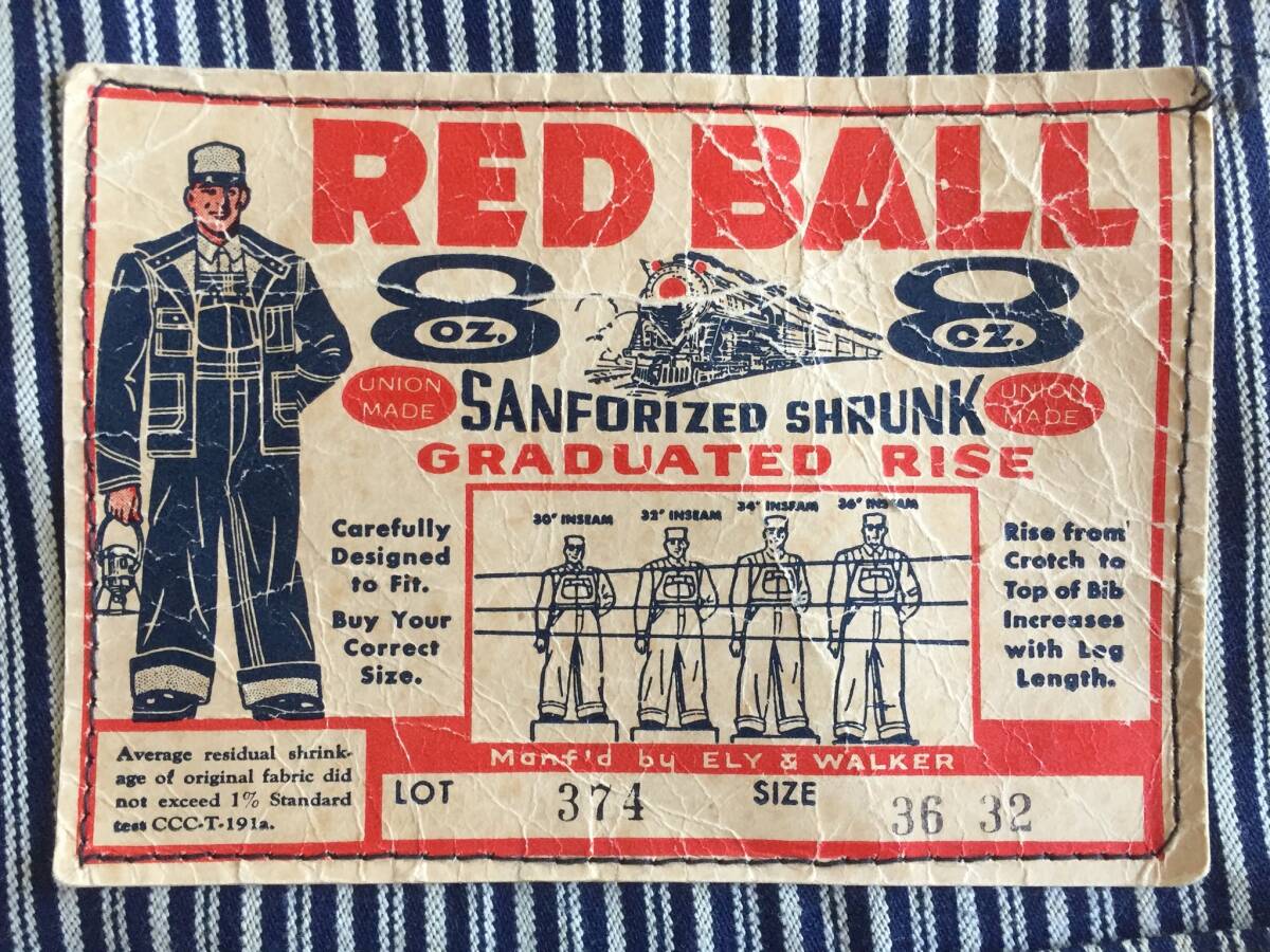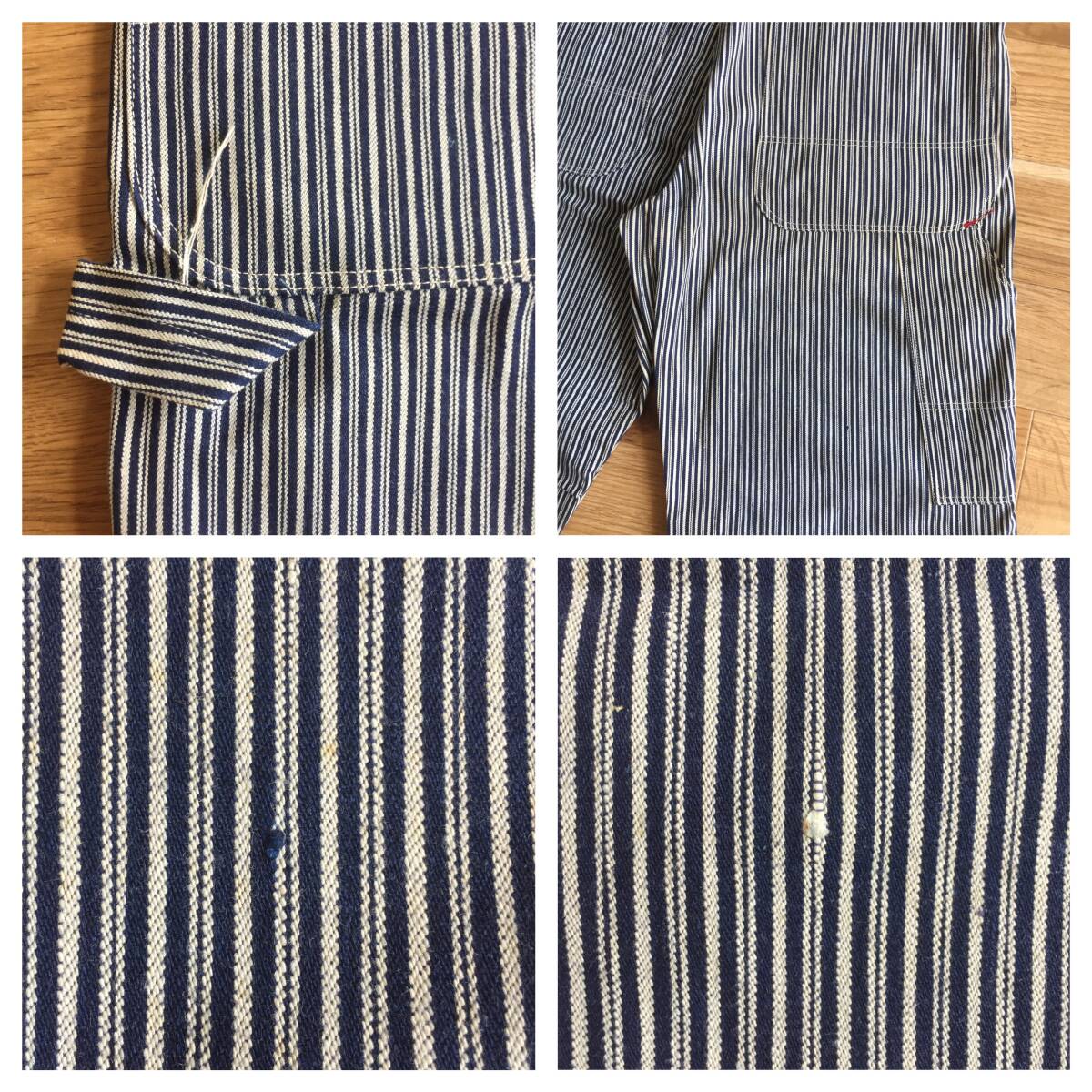 50's ヴィンテージ RED BALL オーバーオール ヒッコリー ストライプ ワーク サイズ36×32 デッドストック 未使用長期保管品 ※ダメージあり