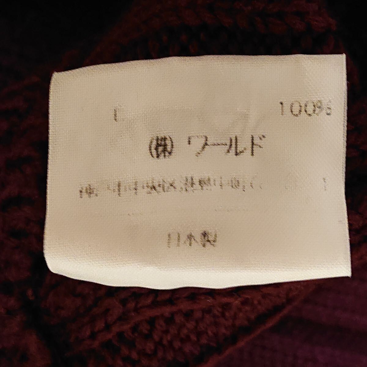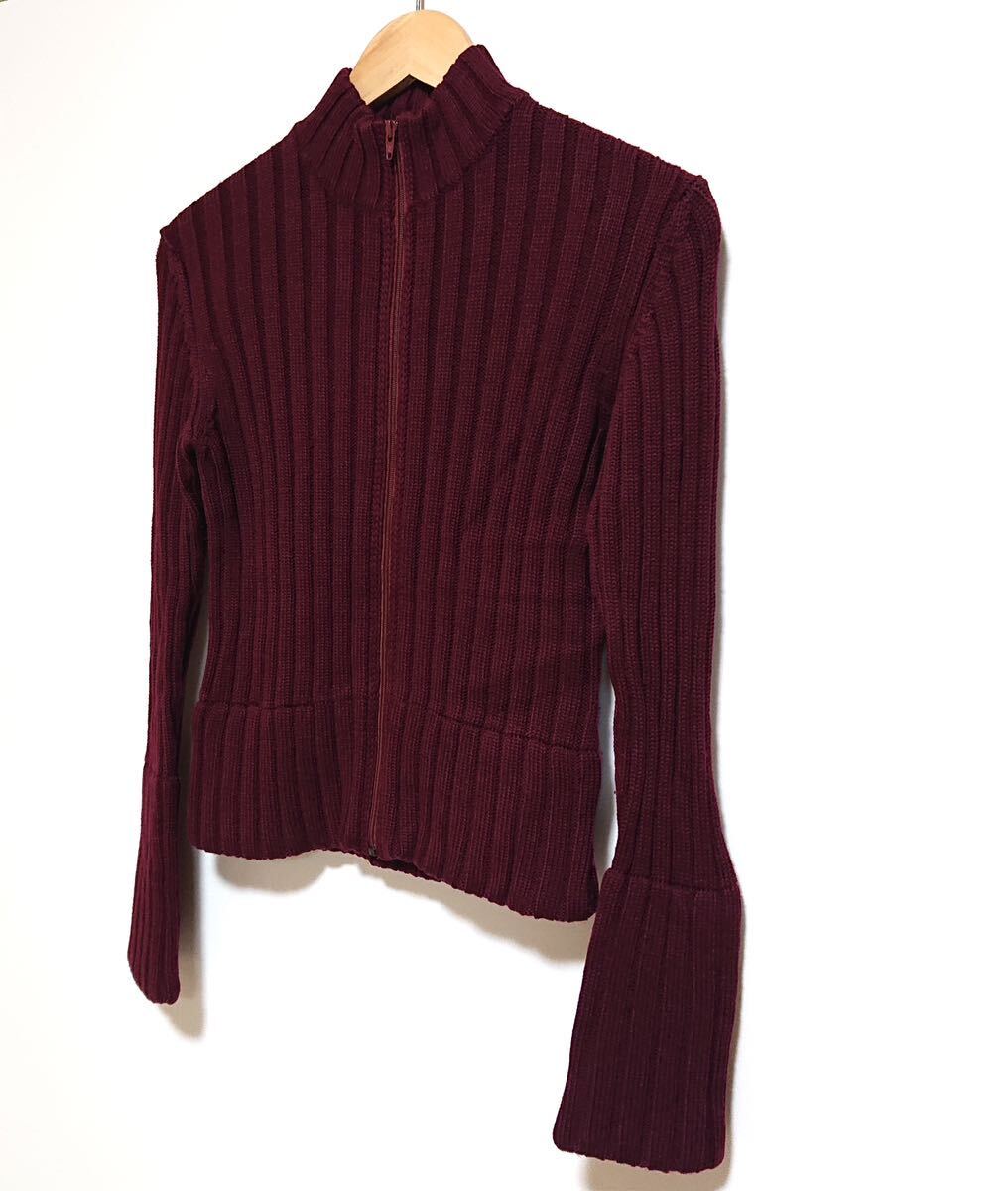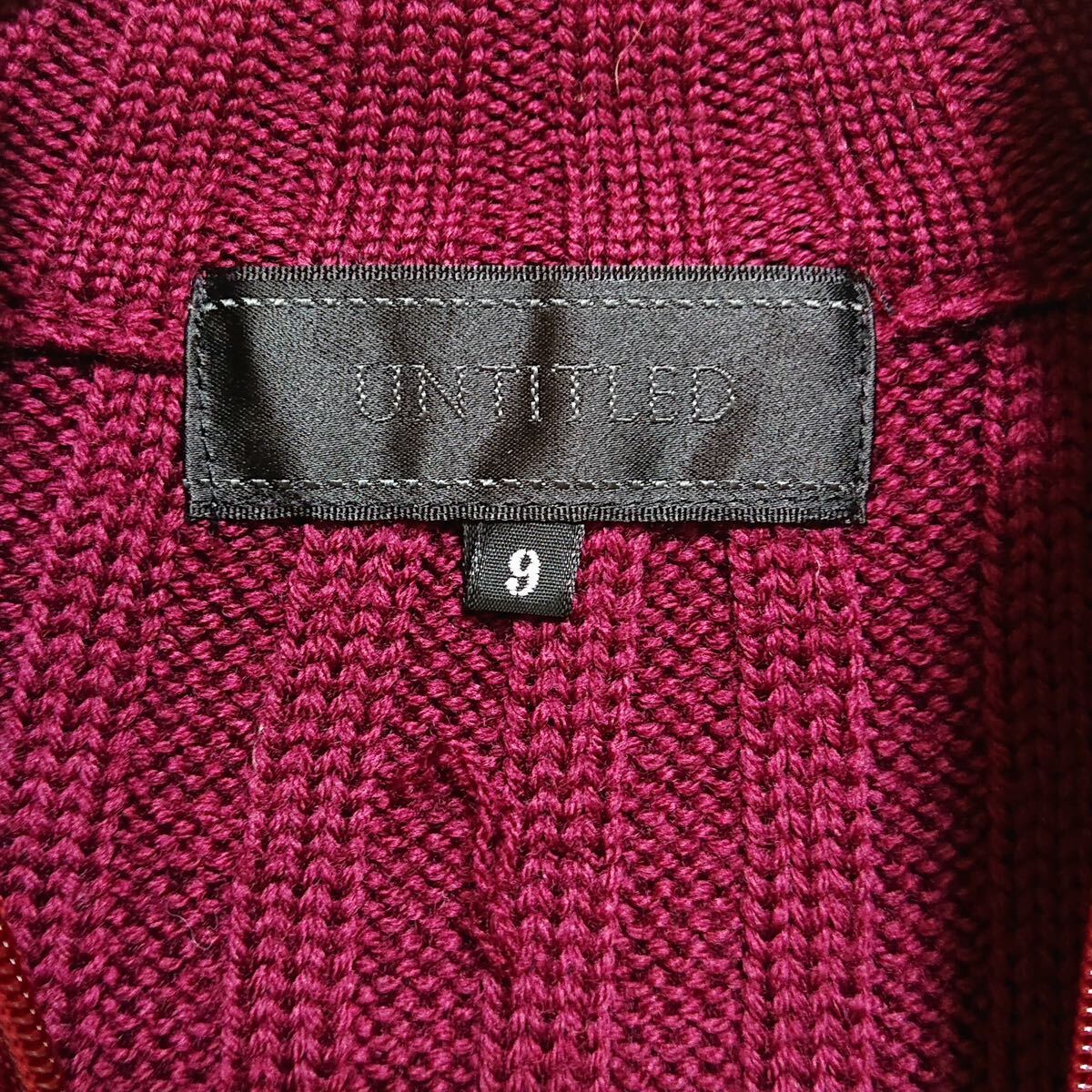 h33gg 日本製 UNTITLED(アンタイトル) サイズ9(M位) ニットカーディガン ワインレッド レディース ワールド セーター 秋冬 ハイネック