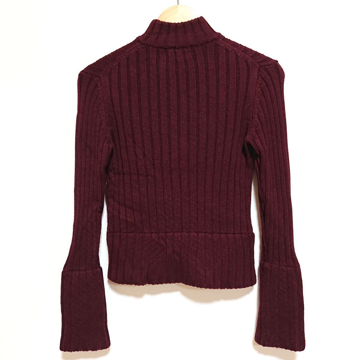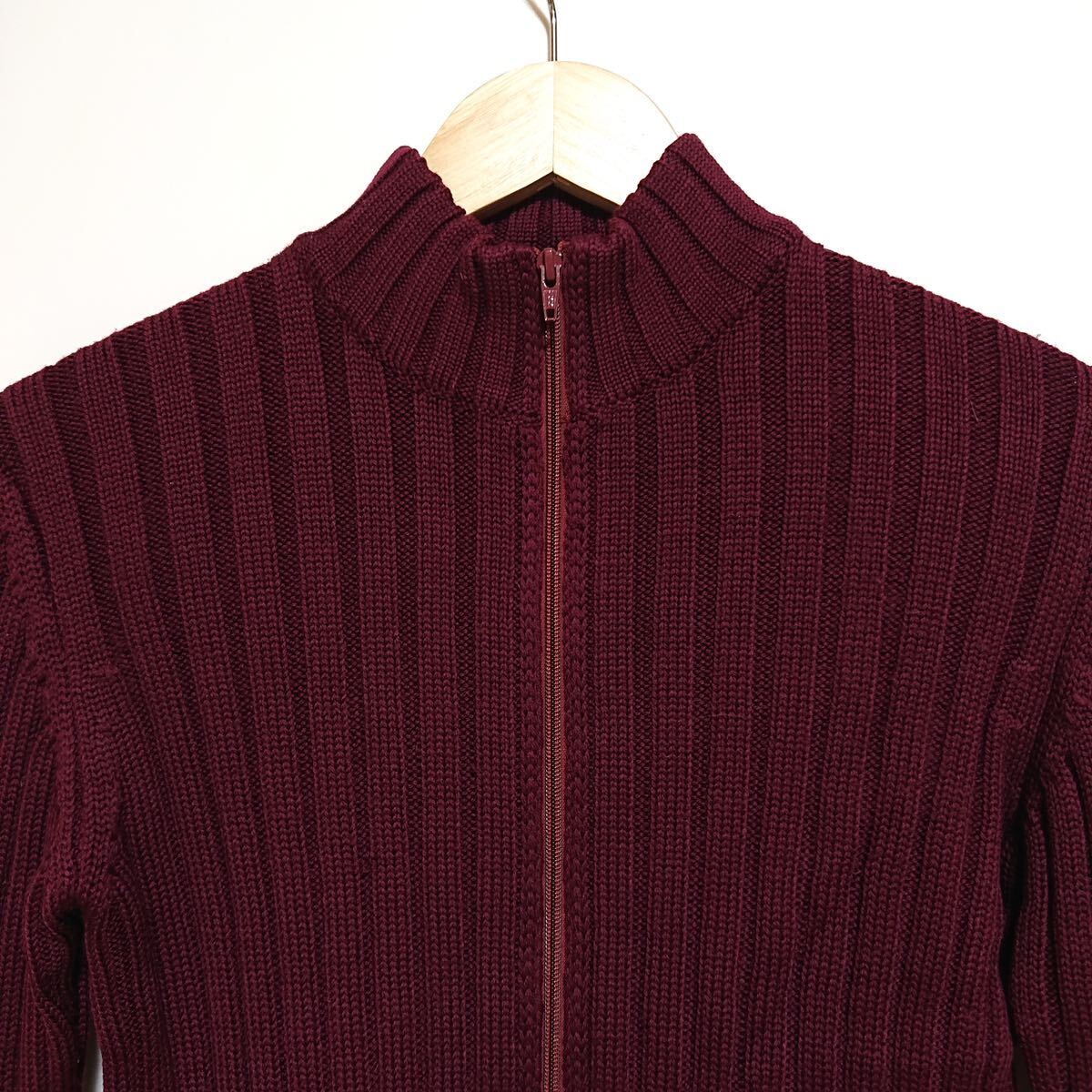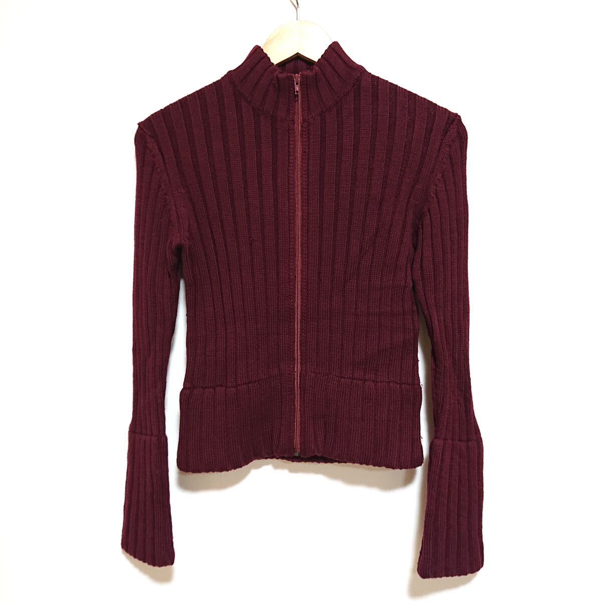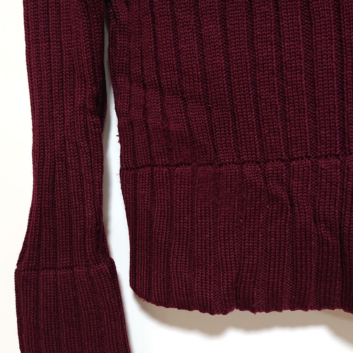 h33gg 日本製 UNTITLED(アンタイトル) サイズ9(M位) ニットカーディガン ワインレッド レディース ワールド セーター 秋冬 ハイネック