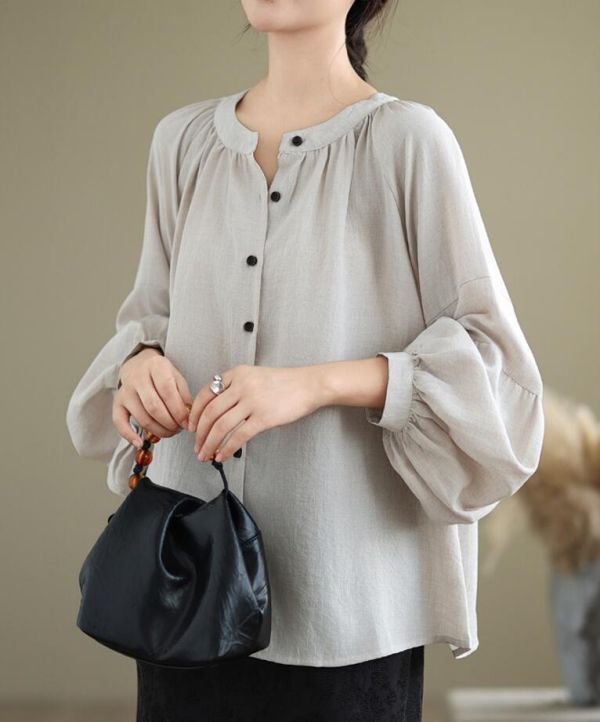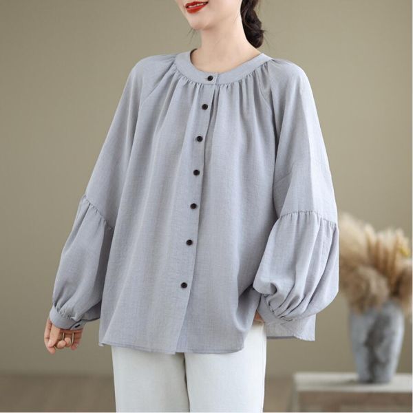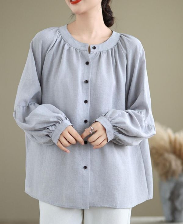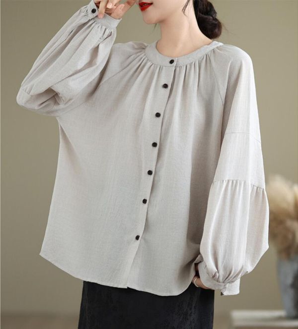 秋新品~ シャツ ブラウス レディース チュニック トップス 無地 ロングシャツ 長袖 大きいサイズ お洒落 カジュアル風 ~グレー