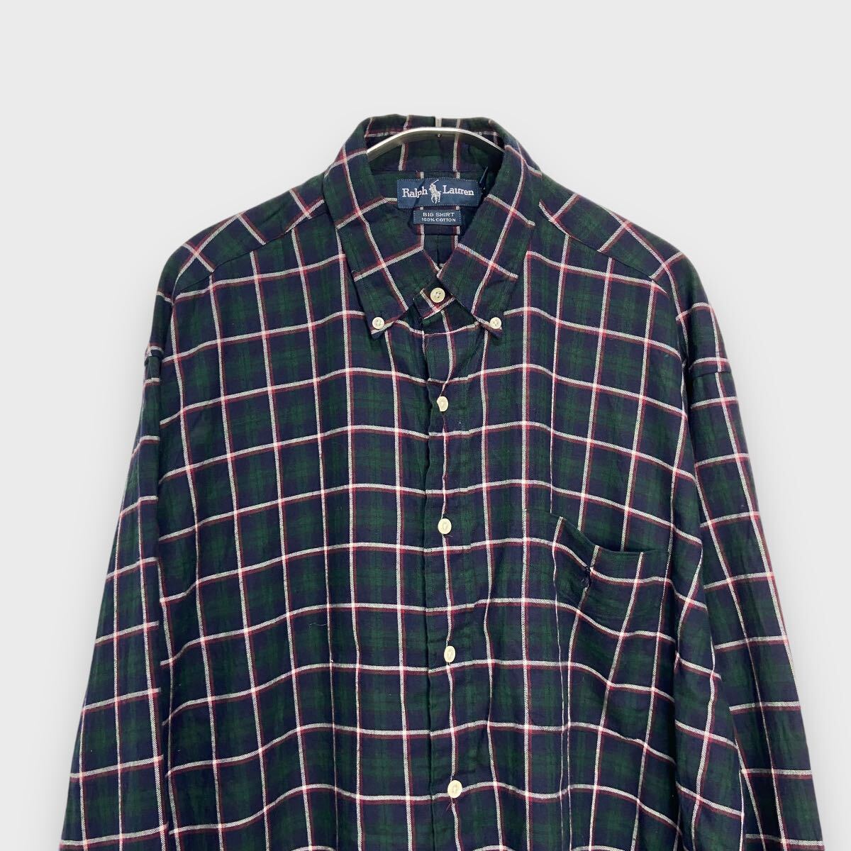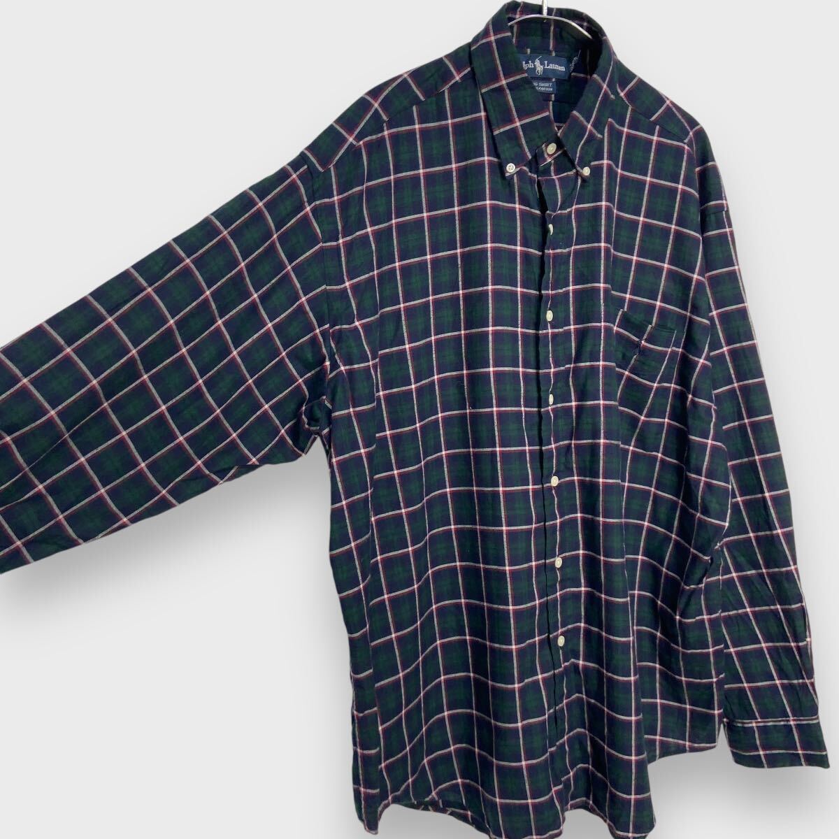 90年代Ralph l Lauren BIG SHIRTのチェック柄長袖ネルシャツです!