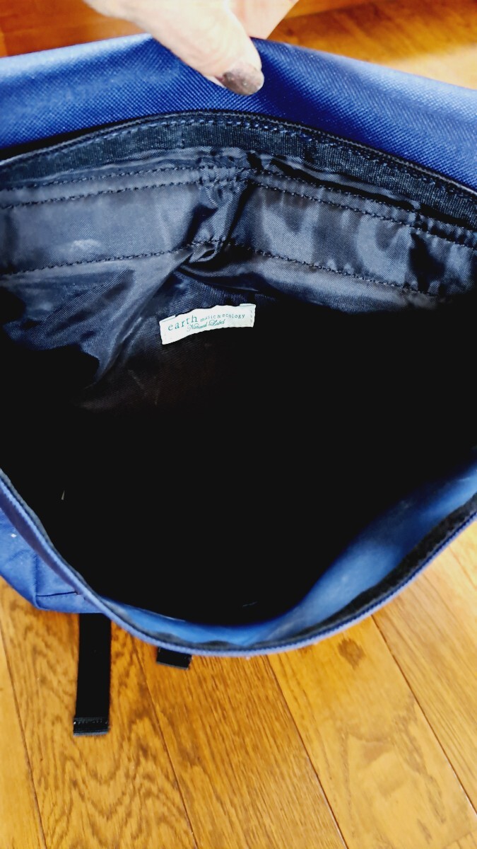 今年の3月頃から少し使い始めたアースミュージック&エコロジーのリュック紺色です。