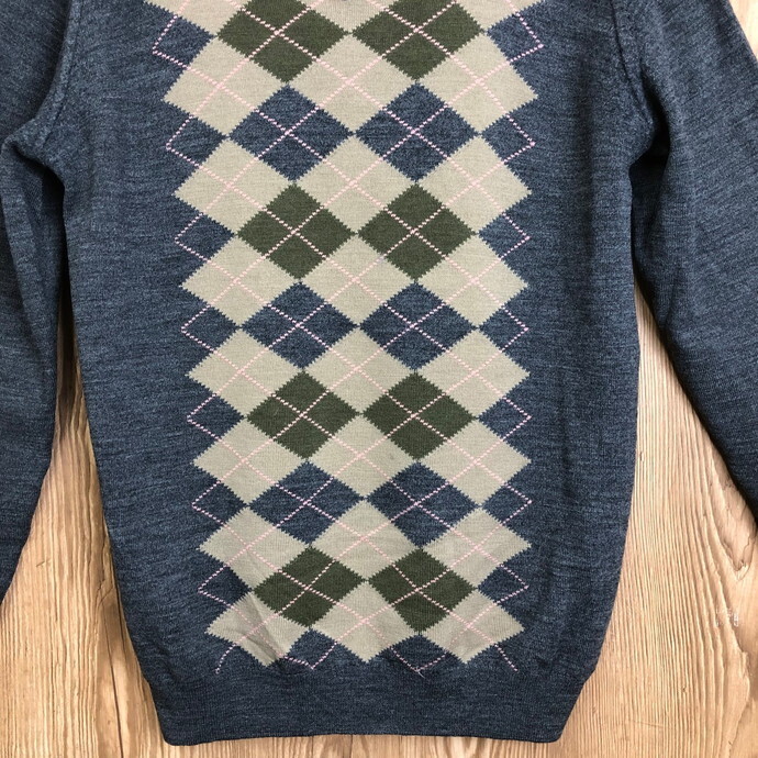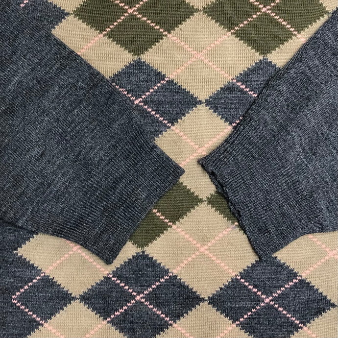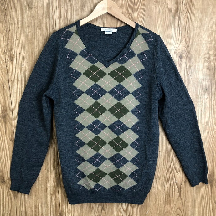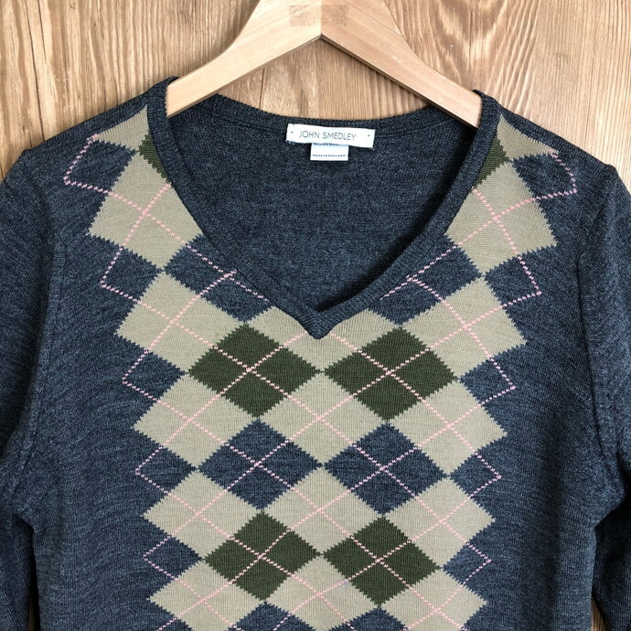 ENGLAND製 JOHN SMEDLEY ジョンスメドレー アーガイル柄 V ネック ニット セーター メンズ S サイズ イギリス製 ユーロ 古着 s24100946