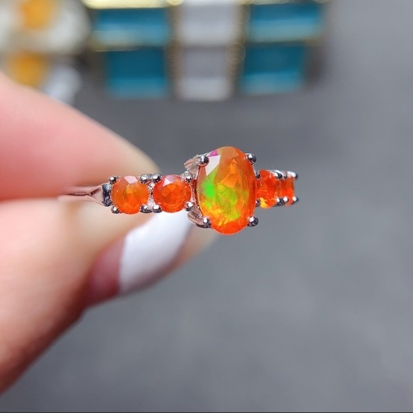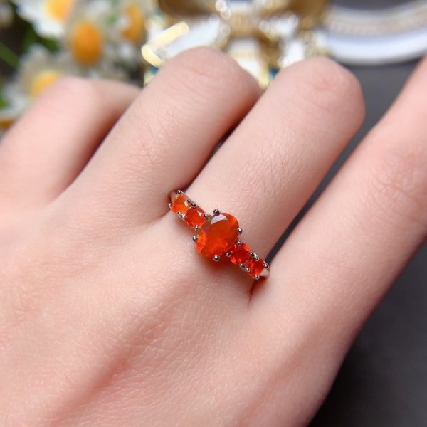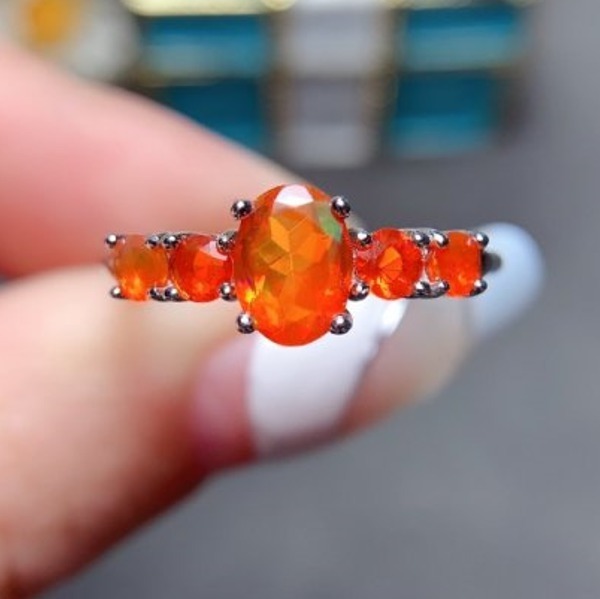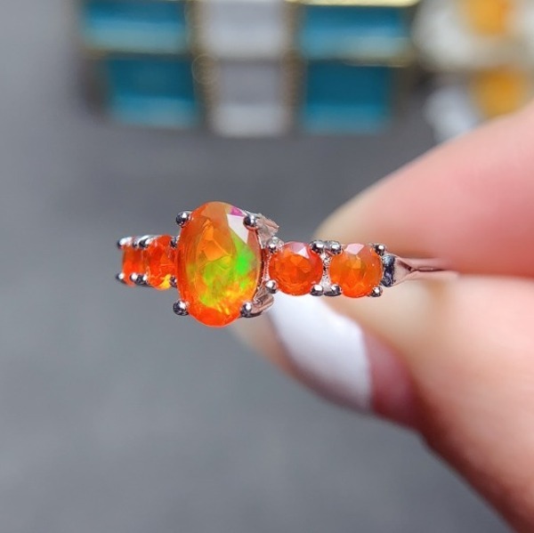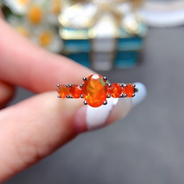 オレンジオパールリング、5x7mm、シルバージュエリー925
