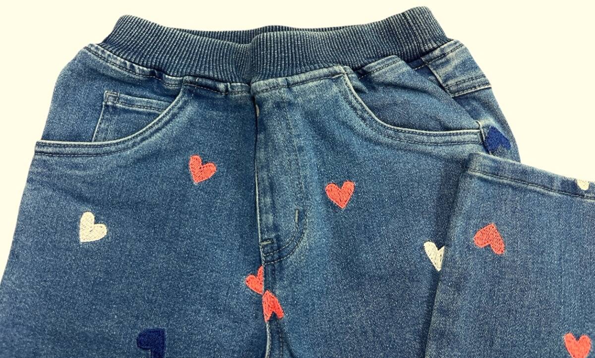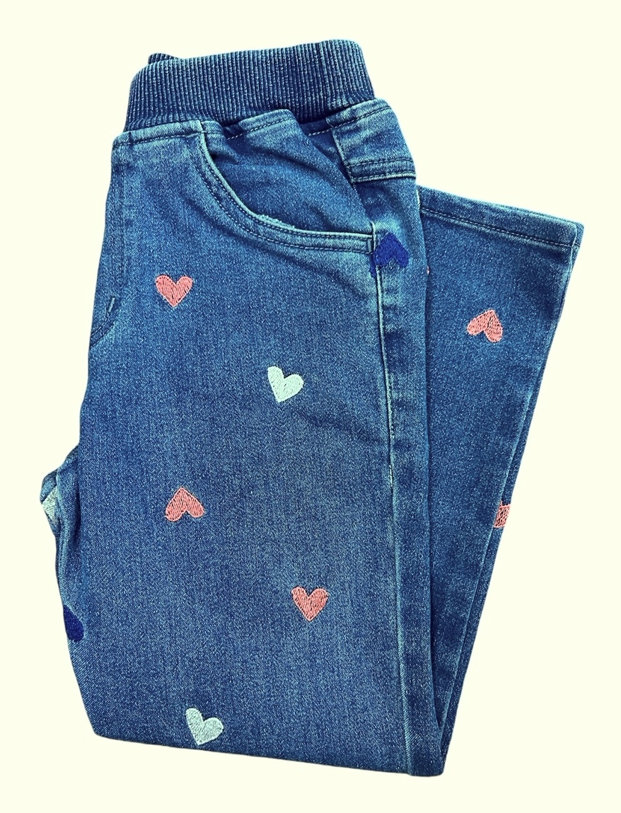 即決 新品タグ付 クレセント Crescent★ハート刺繍 ストレッチ デニム長パンツ★高品質★子供 130cm 9-10才 ¥2640