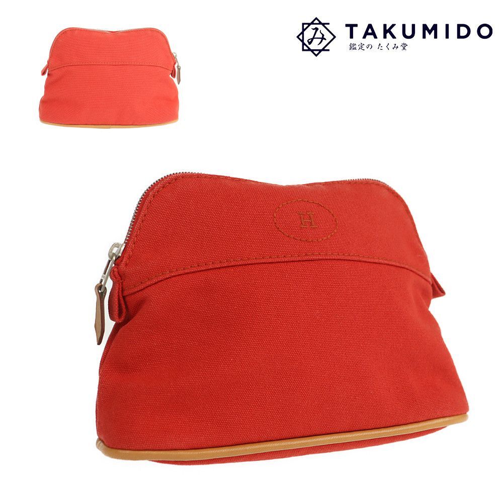 エルメス HERMES ボリードポーチ レッド キャンバス 中古AB 278718
