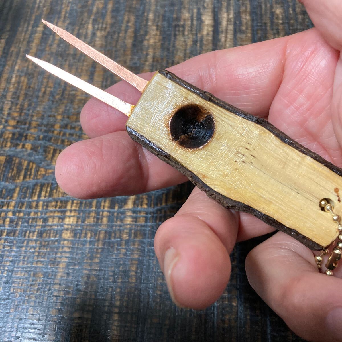 銅工房が試行錯誤して作ったグリーンフォーク二本歯です。