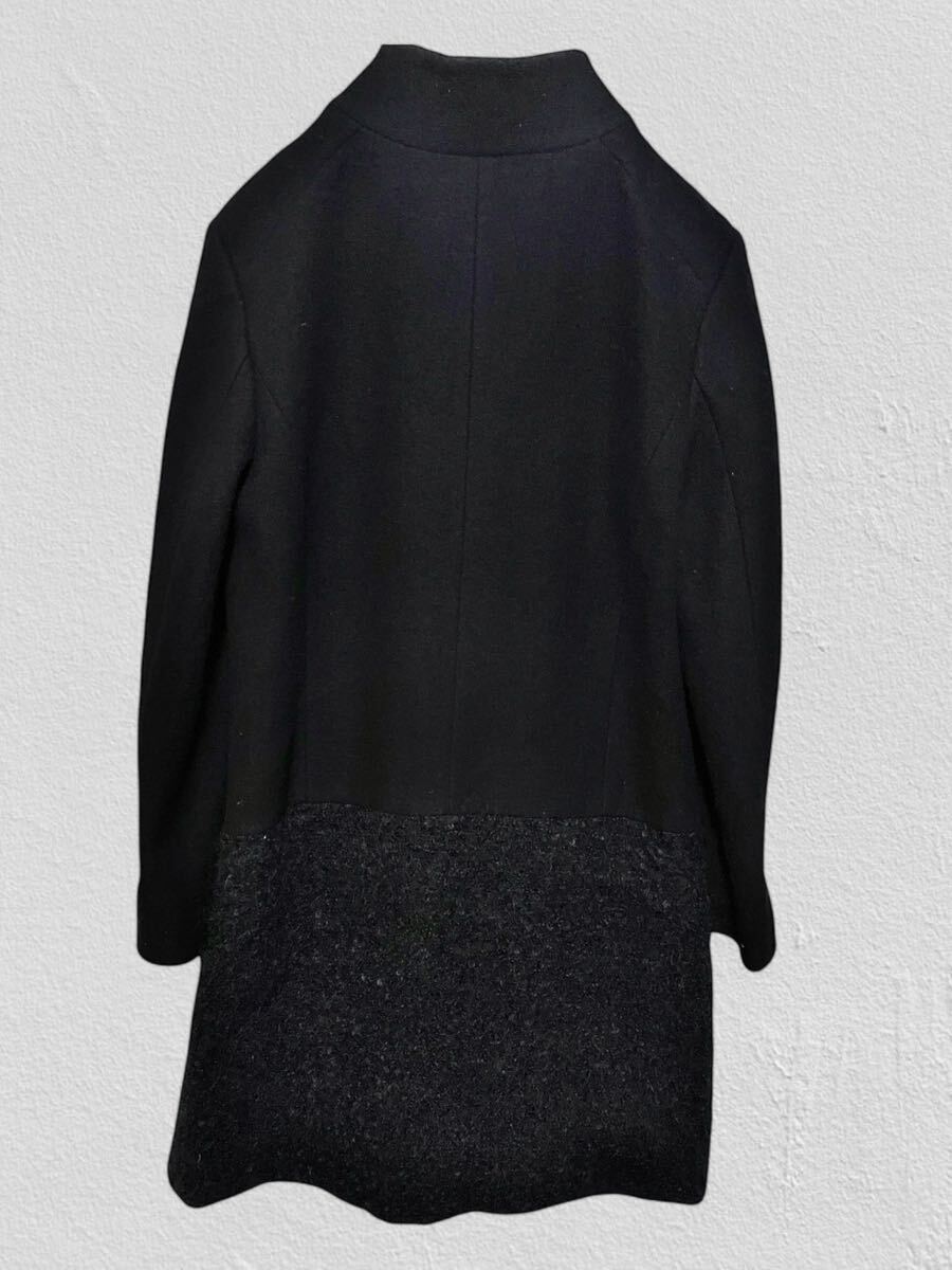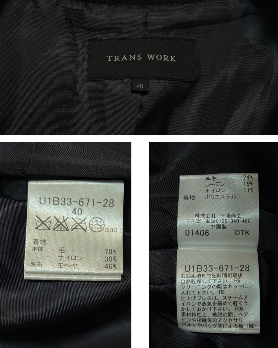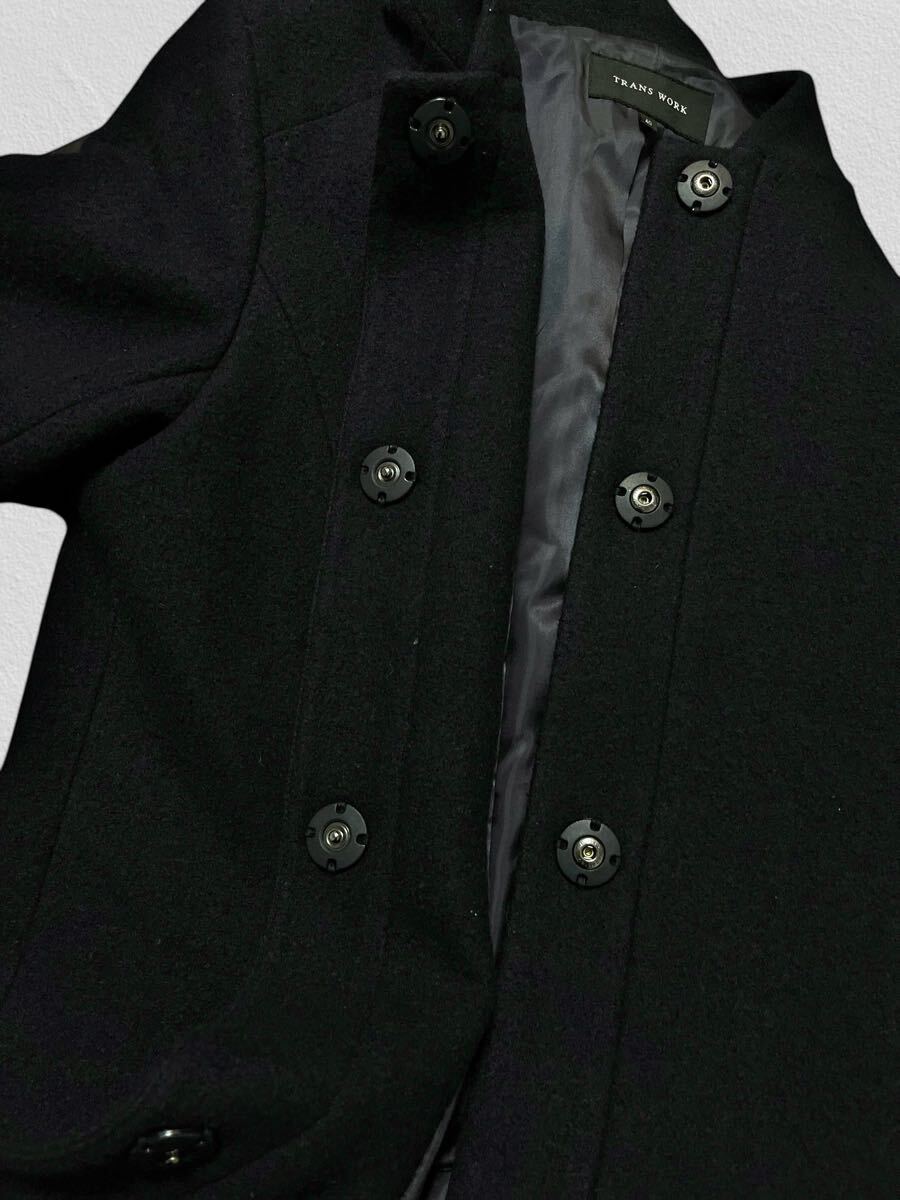 TRANS WORK ウールロングコート 40サイズ●洗濯プレス済●トランスワーク 毛70% スタンドカラー 切替 モヘア ブラック コート 古着/41