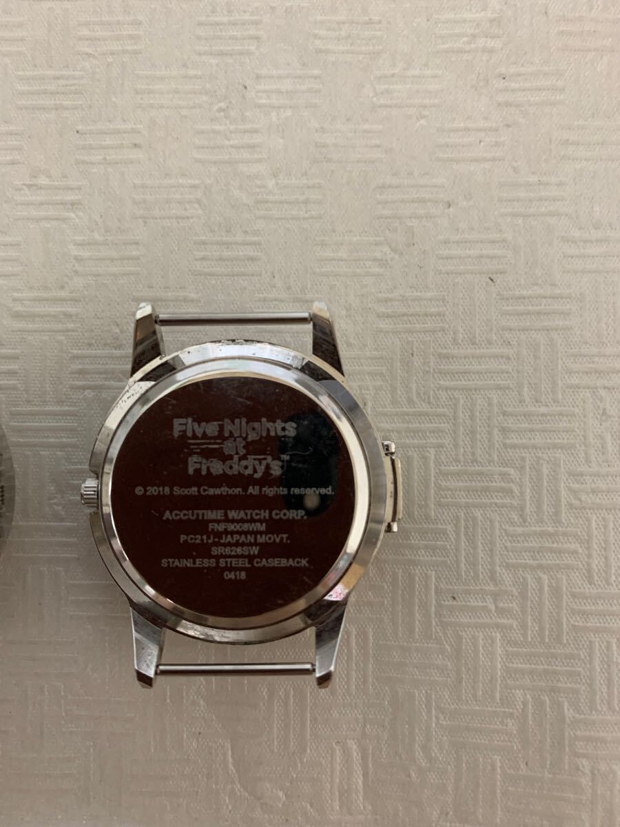 ACCUTIME 開閉式腕時計フェイスのみ2個セット/Five Nights at Freddy's&スマイリー風デザイン/パーツ欠品/動作不動/小傷汚れ等/ジャンク扱