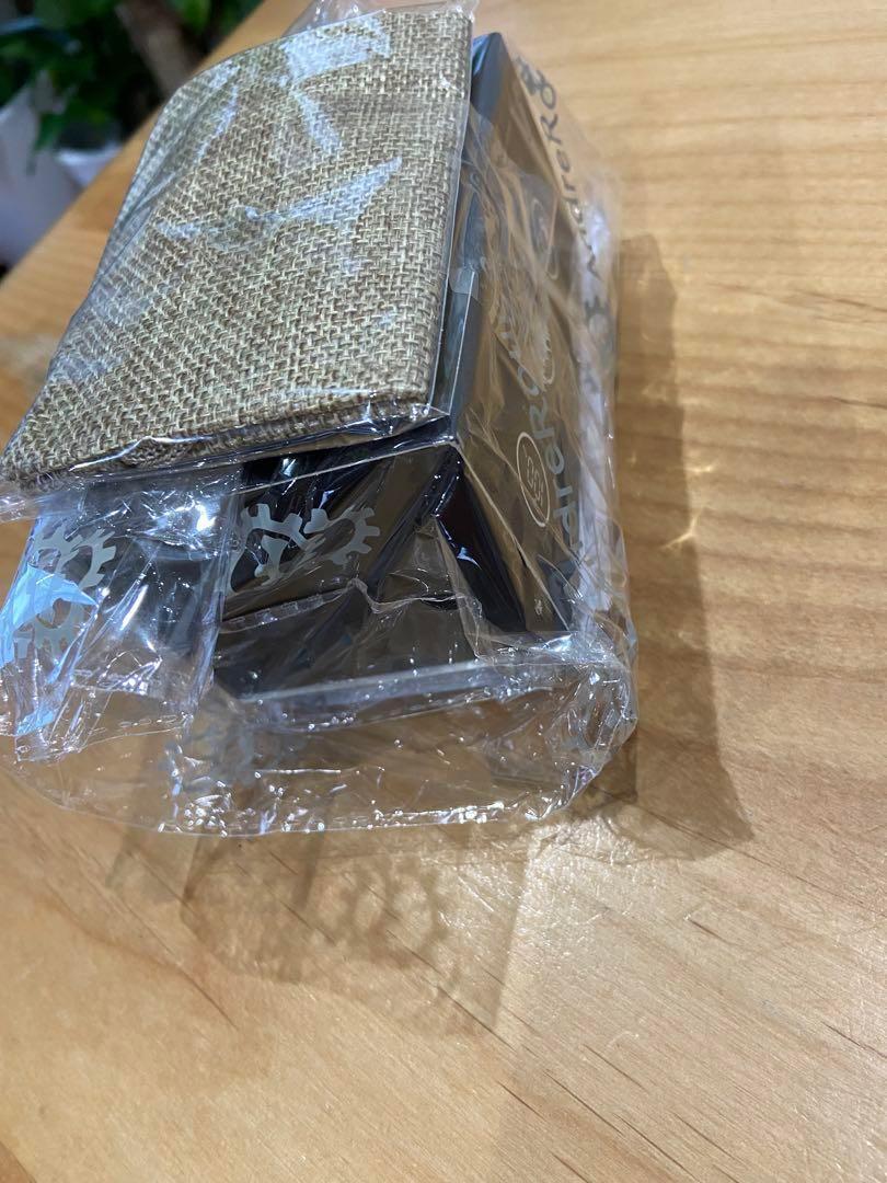 メッキ処理のされた輝くボディーは手触りも抜群であるだけでなく、どこに置いてもインテリアの魅力を削いでしまうことはないでしょう。小さな本体はそれだけで邪魔にならないものですが、付属している充電ケーブルや清掃用のブラシなどもまとめて入れられる収納袋が付属してます。