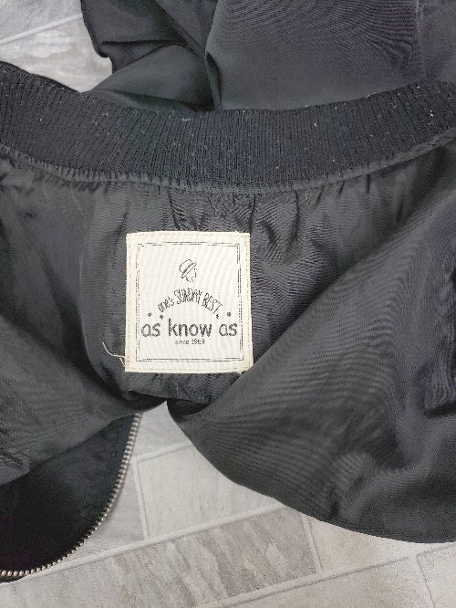 ◇ ⊇ AS KNOW AS アズノゥアズ シンプル 長袖 MA-1 表記なし ブラック レディース P