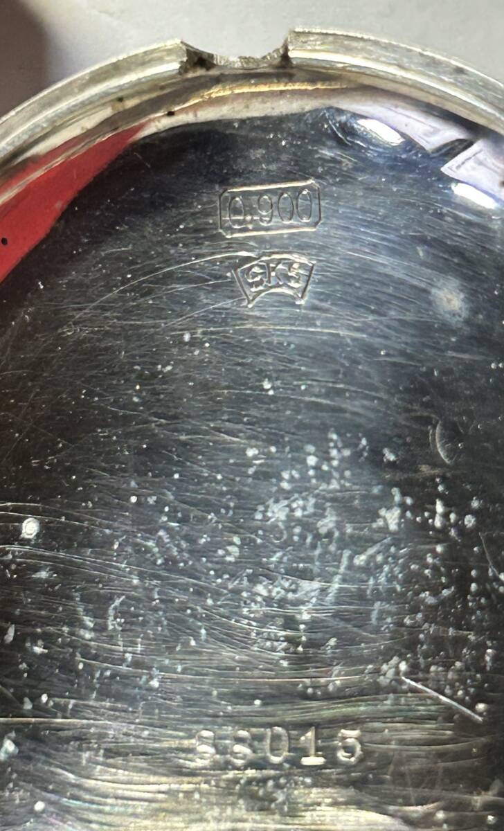 外観に少々の凹みがありますが、銀製品のためで稼働には支障がありません。銀製は、柔らかい金属のためです。