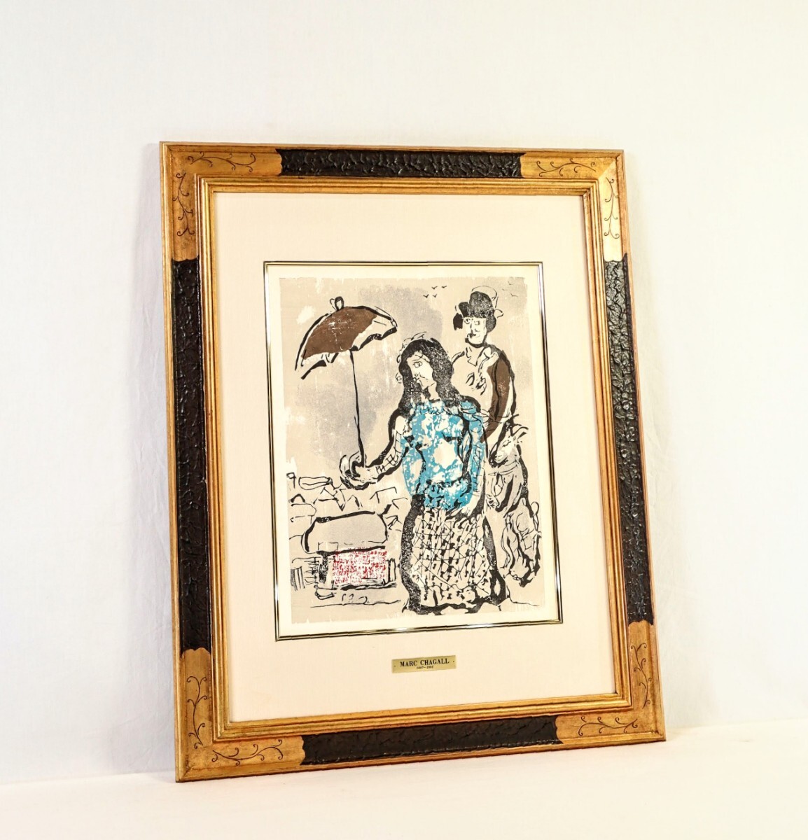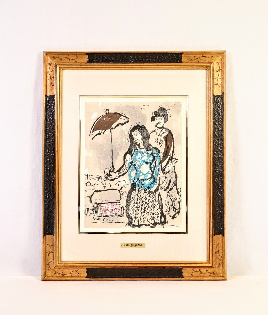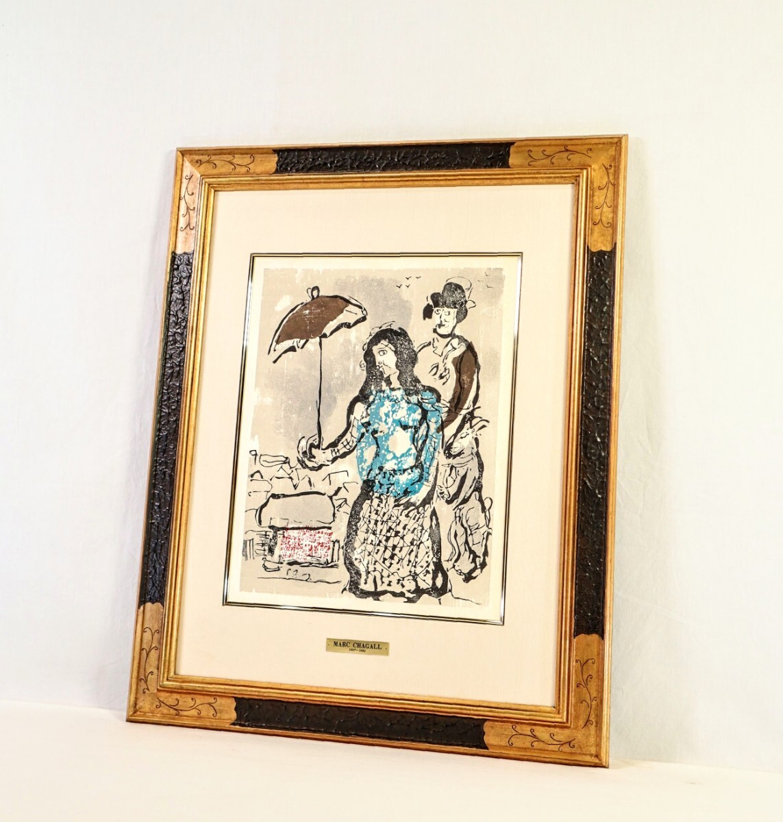 真作 マルク・シャガール 1968年木版画「ポエムより VERS LA RIVE」画寸 25×32cm 詩集より額装 30数年間書き溜めた詩と24点の版画 9861