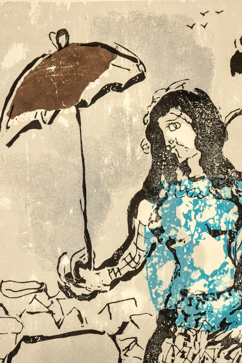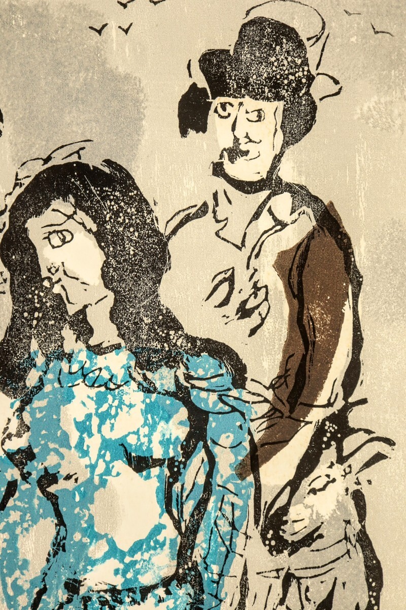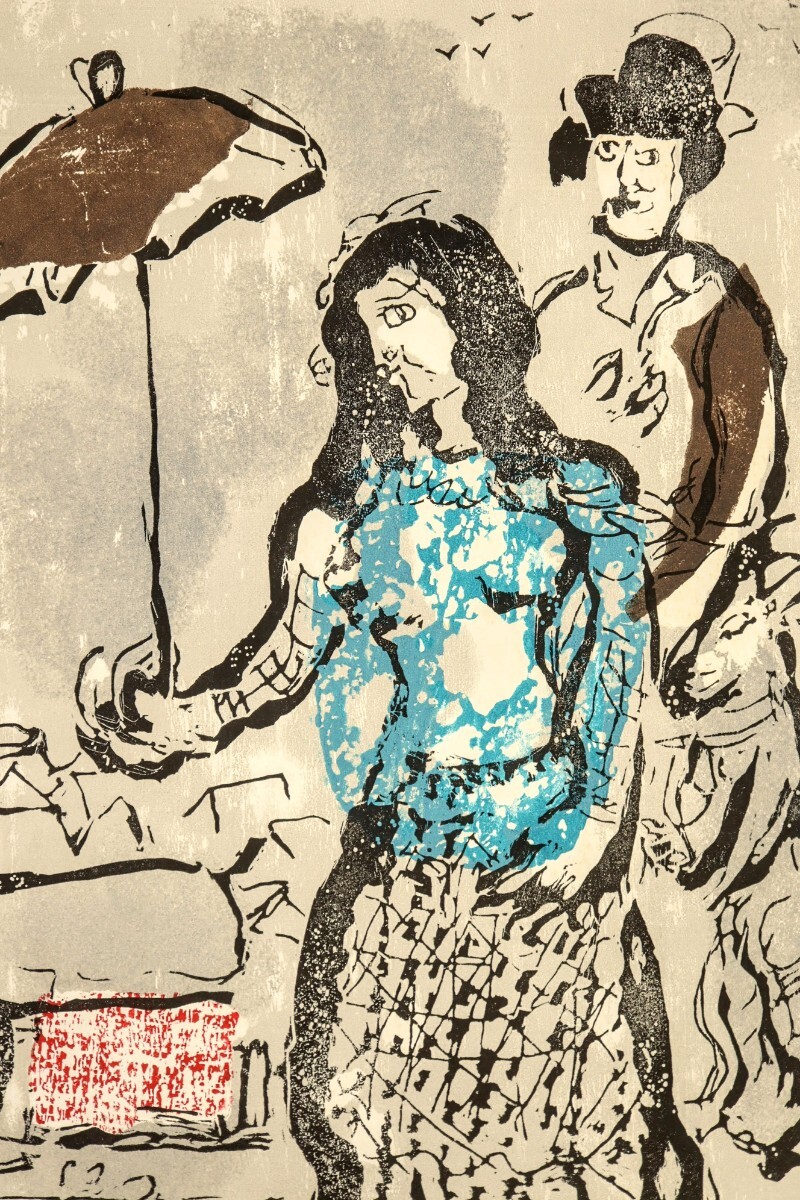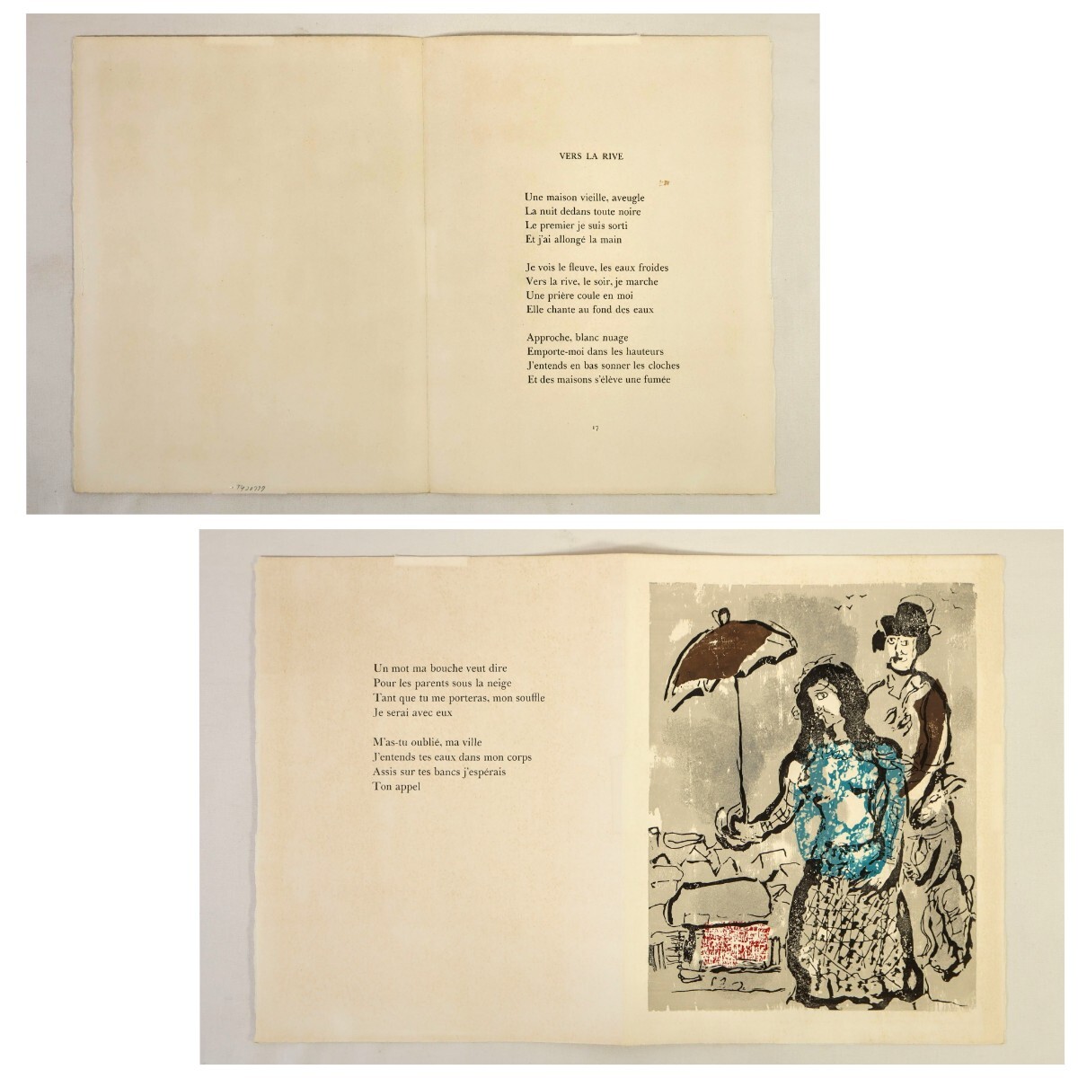 真作 マルク・シャガール 1968年木版画「ポエムより VERS LA RIVE」画寸 25×32cm 詩集より額装 30数年間書き溜めた詩と24点の版画 9861