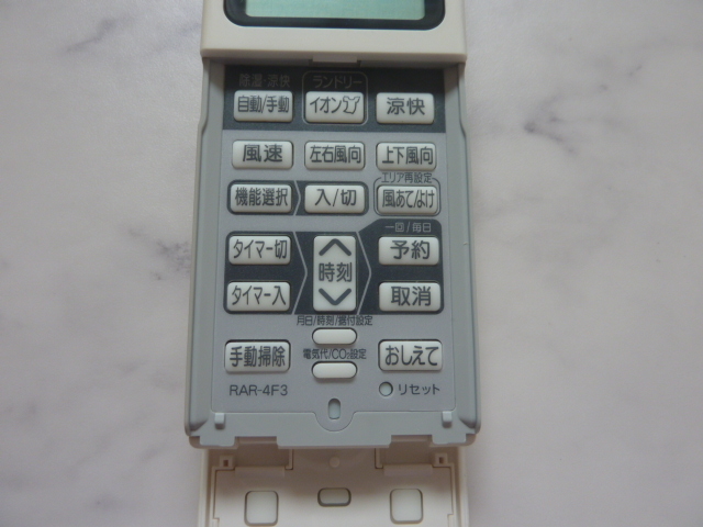 商品説明 | ■エアコンリモコンRAR-4F3です。 ■液晶部分に薄いすり傷があります。全体的に色焼けしています。 ■動作確認済みです。電池は付属しません。 ■USED品です。 ■状態の感じ方には個人差がありますので、細かい事を気にされる方・完品をお求めの方は入札をお控え下さい。 ■撮影の際に、光などの加減で色彩が変化する場合がありますのでご了承下さい。 ■発送前に再度動作確認を行いますが、まれに不具合が発覚する場合があります。その際はお取引を中止させていただきますので、あらかじめご了承下さい。 ■ノークレーム・ノーリターンでお願いします。 |