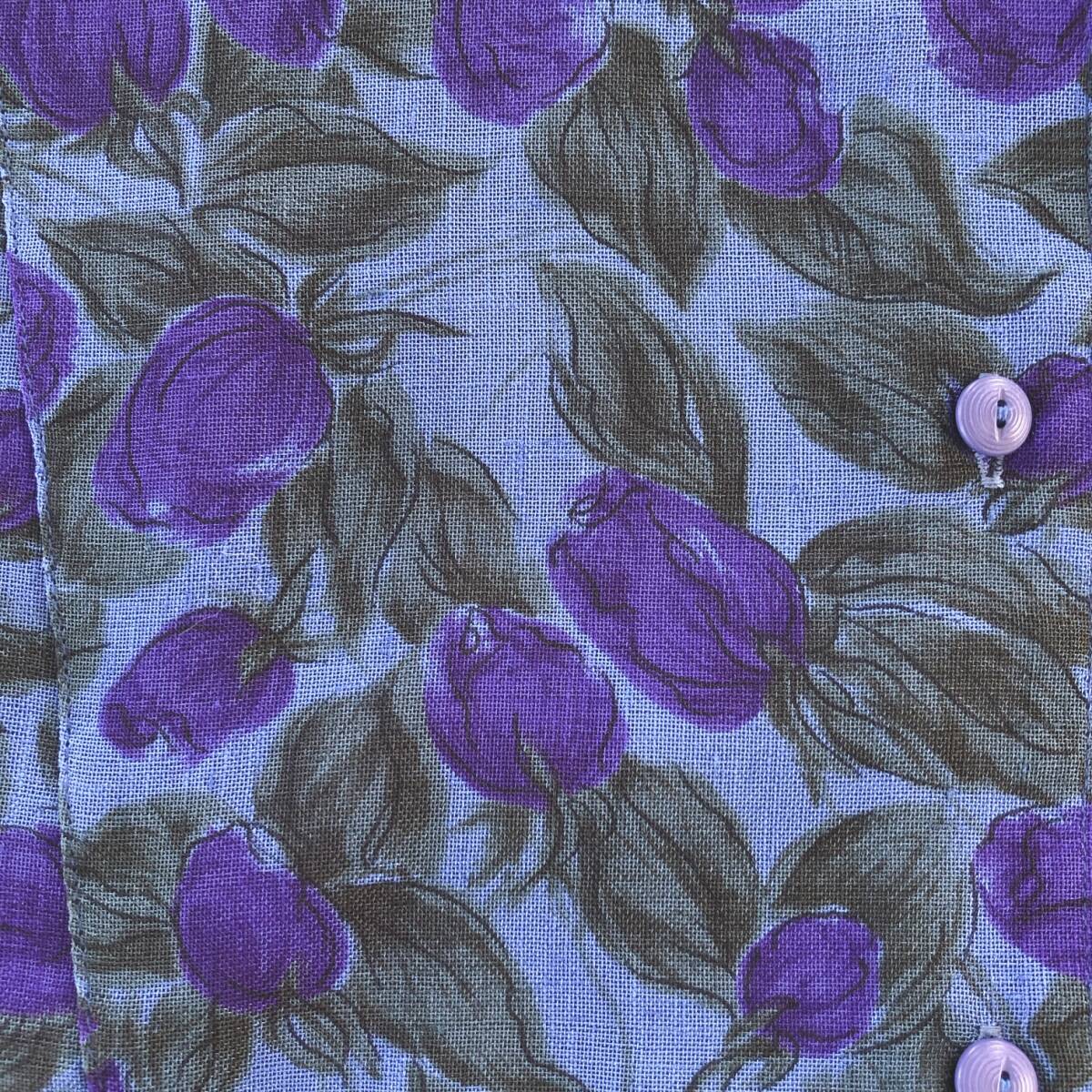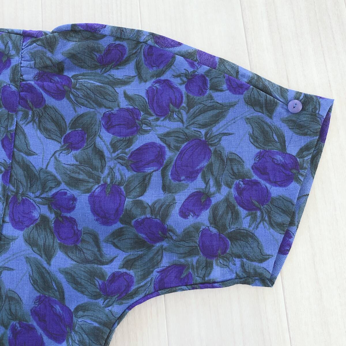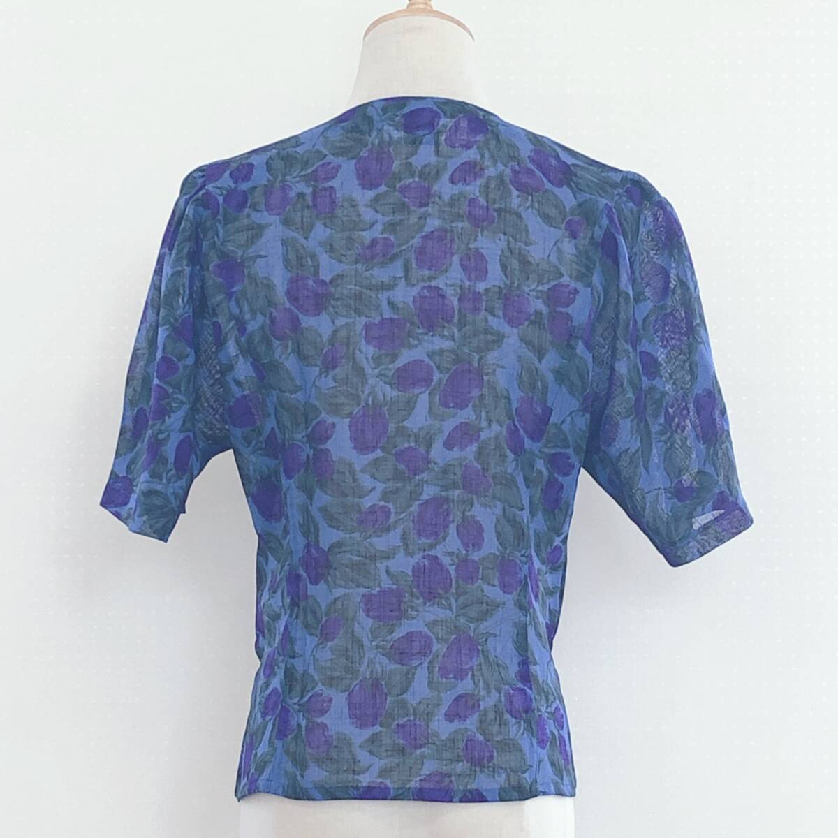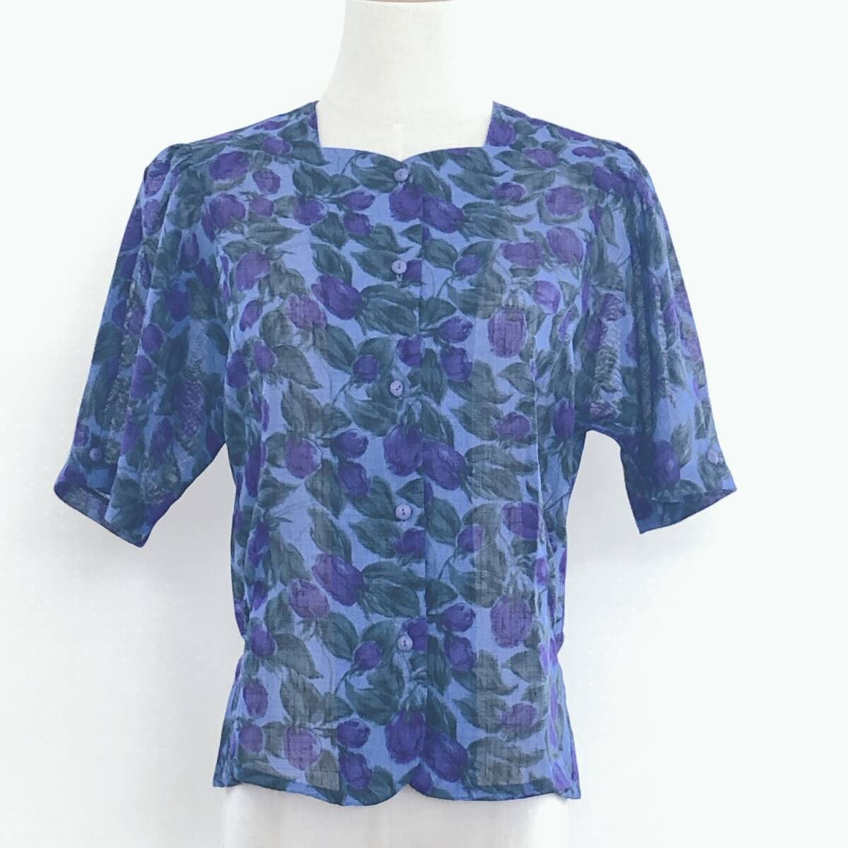 Y1335 美品 ST.PATARA レディース トップス ブラウス 半袖 替えボタン 薄手 肩パッド 9号 青緑 パープル 紫 花柄 上品 夏 ミセス
