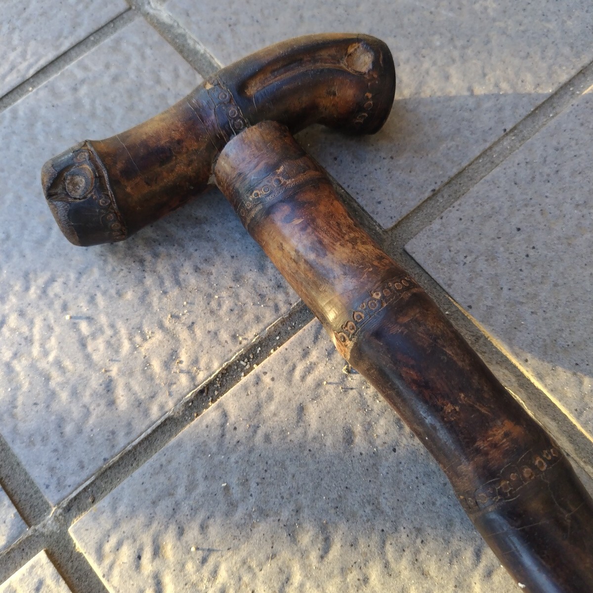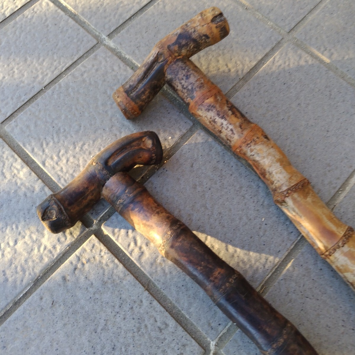 貫禄の竹杖です。25mmの長さの違いが有りますが、太さは同じ短い方が少し細です。