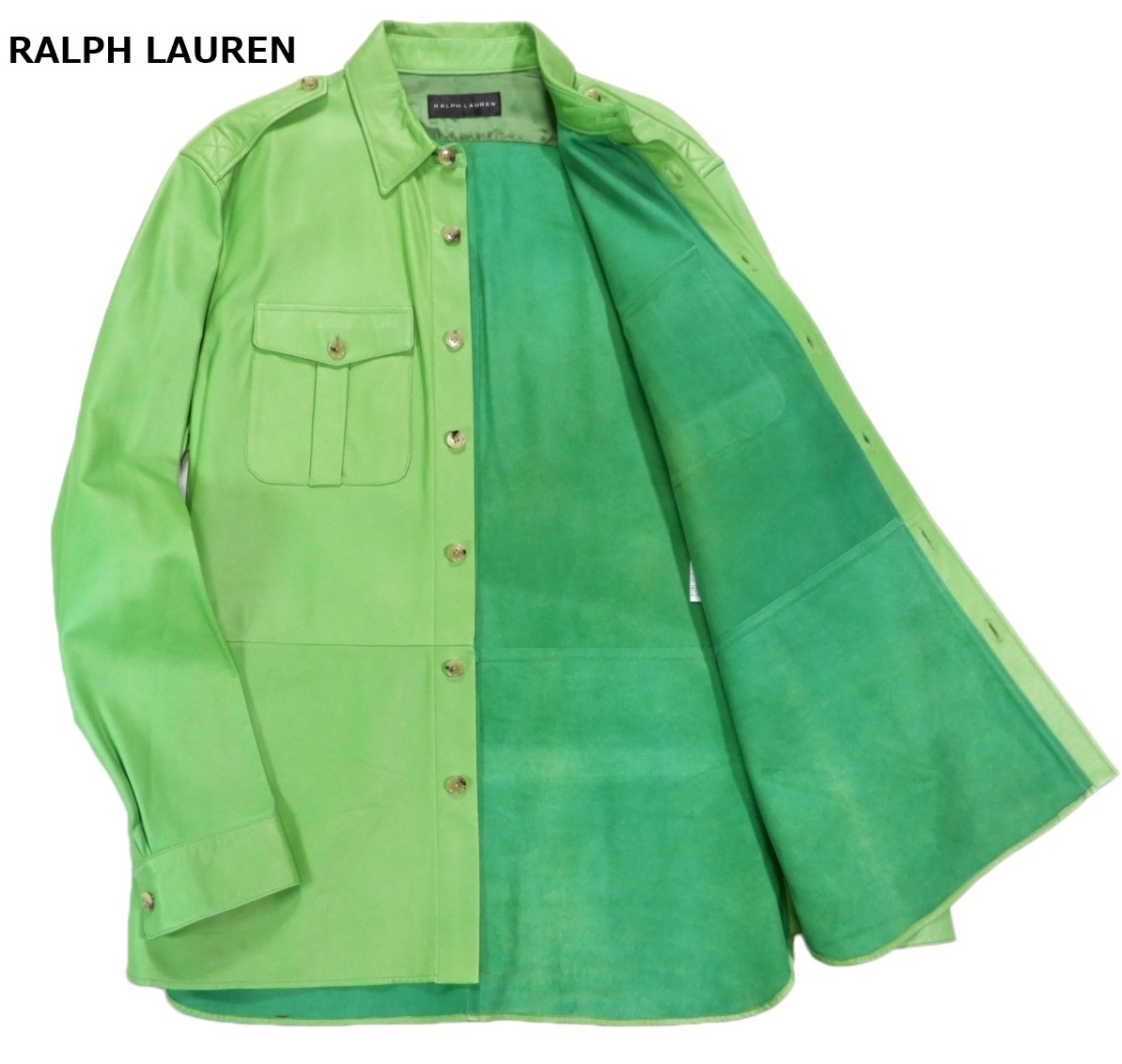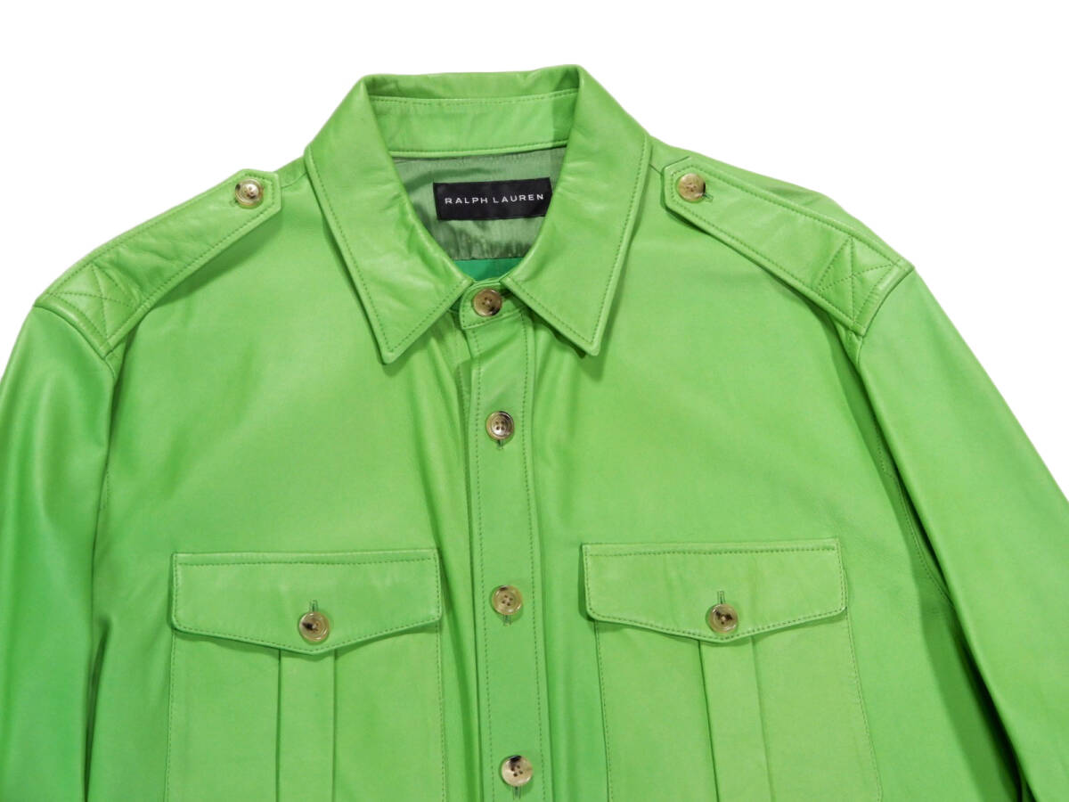 新品同様 ラルフローレン RALPH LAUREN 最高級◆ラムレザー シャツ ジャケット 羽織 XL