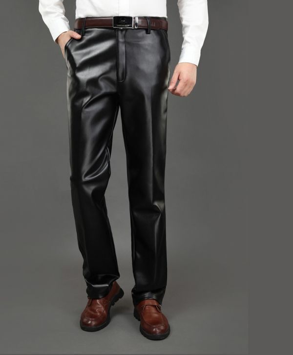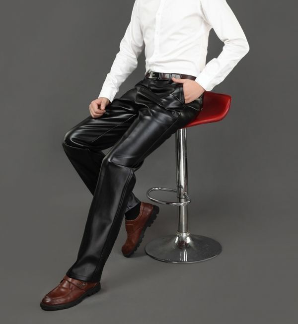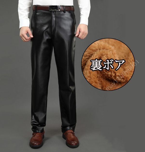 新品!裏ボア フェイクレザーパンツ 革パンツ メンズ 皮パン スキニー 美脚シルエット ビジネス 大きサイズ スリム タイト  黒 30/L
