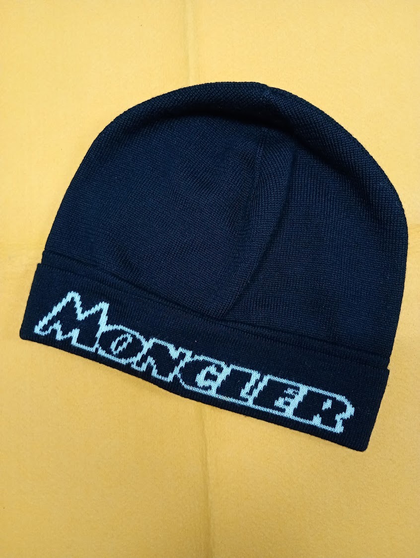 ☆【528】モンクレール ニットキャップ / MONCLER イタリア製 ニット帽 帽子 キャップ 黒系 ブラック系