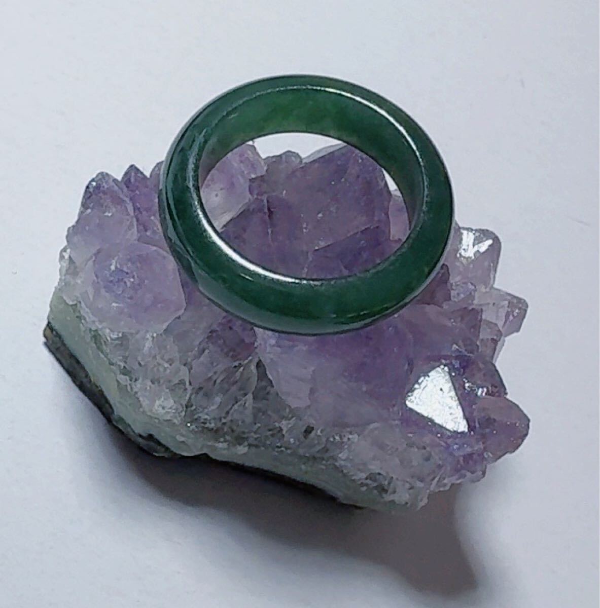 R2-0180天然本翡翠《本物保証》 翡翠リング約15号 一点物 希少 縁起物 お守り パワーストーン