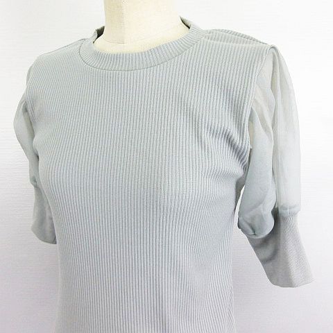 アズールバイマウジー AZUL by moussy ニット カットソー 五分袖 丸首 リブ ドッキング チュール M グレー ※EKM レディース