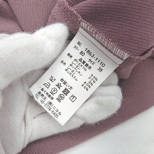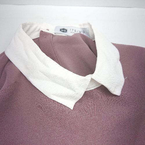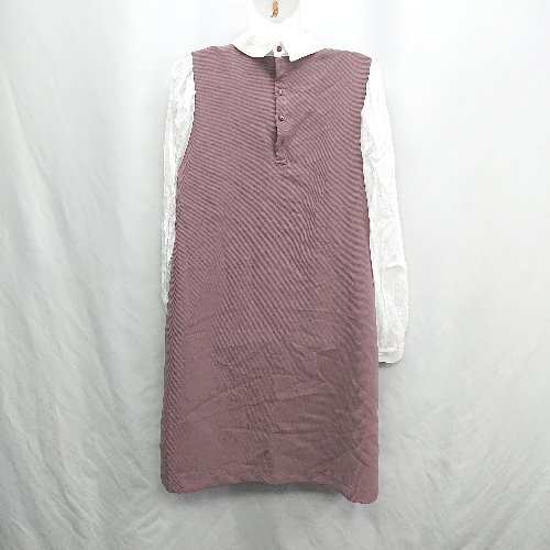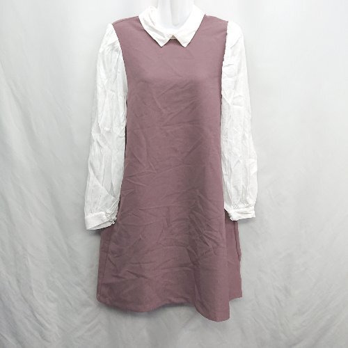 ◇ ⊇ 179/WG 襟配色 ギャザー加工 長袖 膝丈 ワンピース サイズ38 ピンク系 ホワイト レディース E