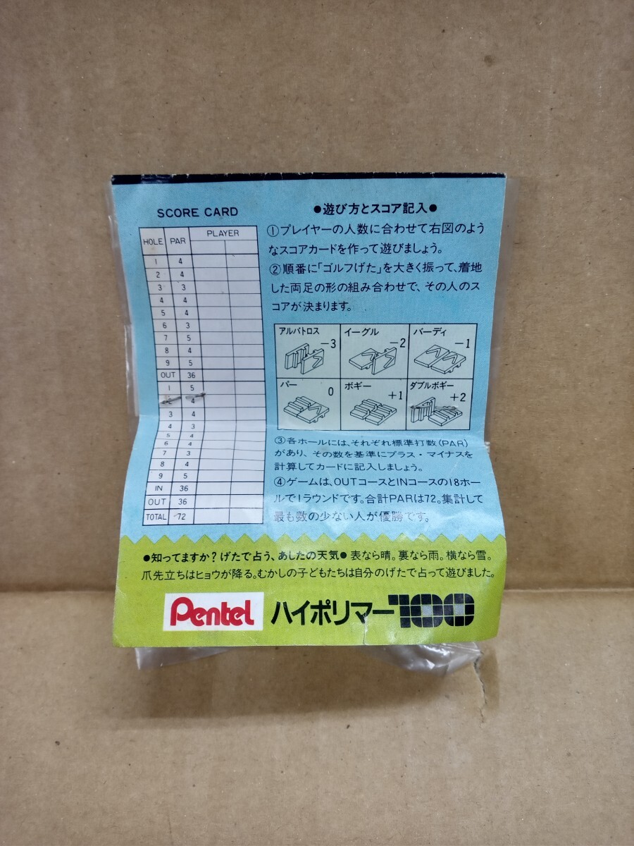 内容は、ゴルフげた という小さなげたの玩具です。遊び方が裏面に書いてあります。