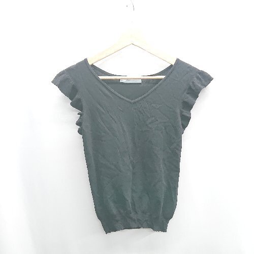 ◇ ⊂ Φ Aveniretoile Vネック フリル装飾 ノースリーブニット サイズ36 ブラック レディース E