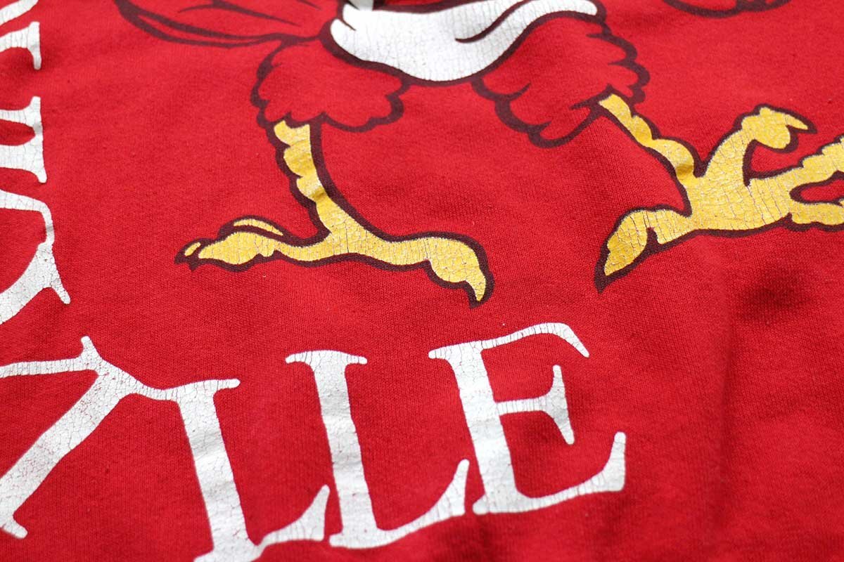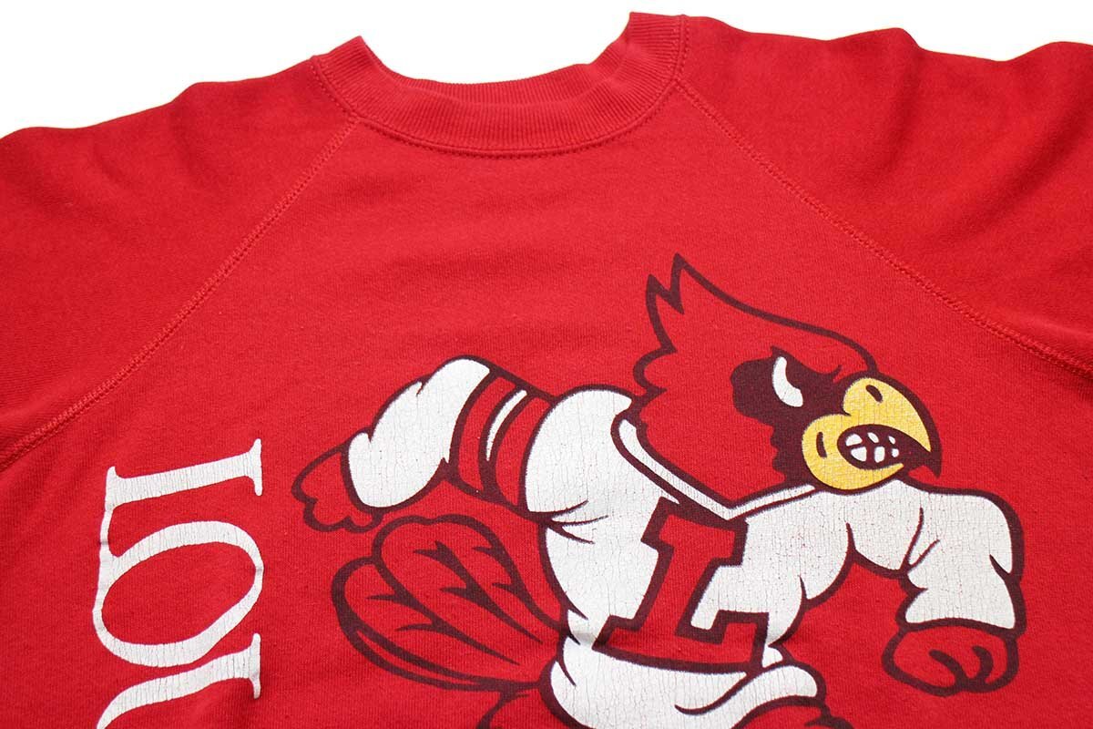 ★80s RAMBLERS LOUISVILLE CARDINALS ひび割れプリント スウェット 赤 M★オールド ビンテージ カレッジ スポーツ マスコット レディース