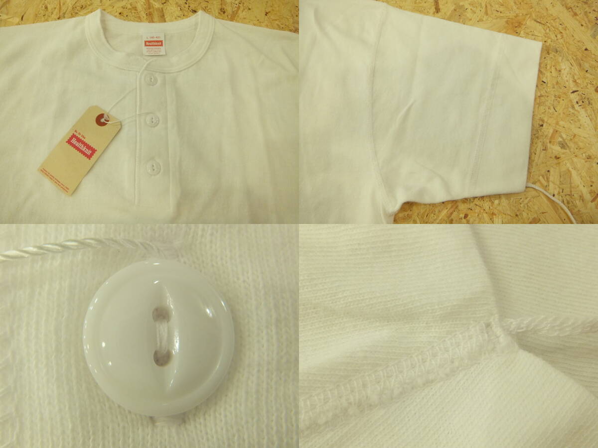 ヘルスニット日本正規品 永遠の定番!!=906S ヘンリーネック=3つボタンTシャツ[半袖][白][M※小さめ]新品! 〒レターパック発送