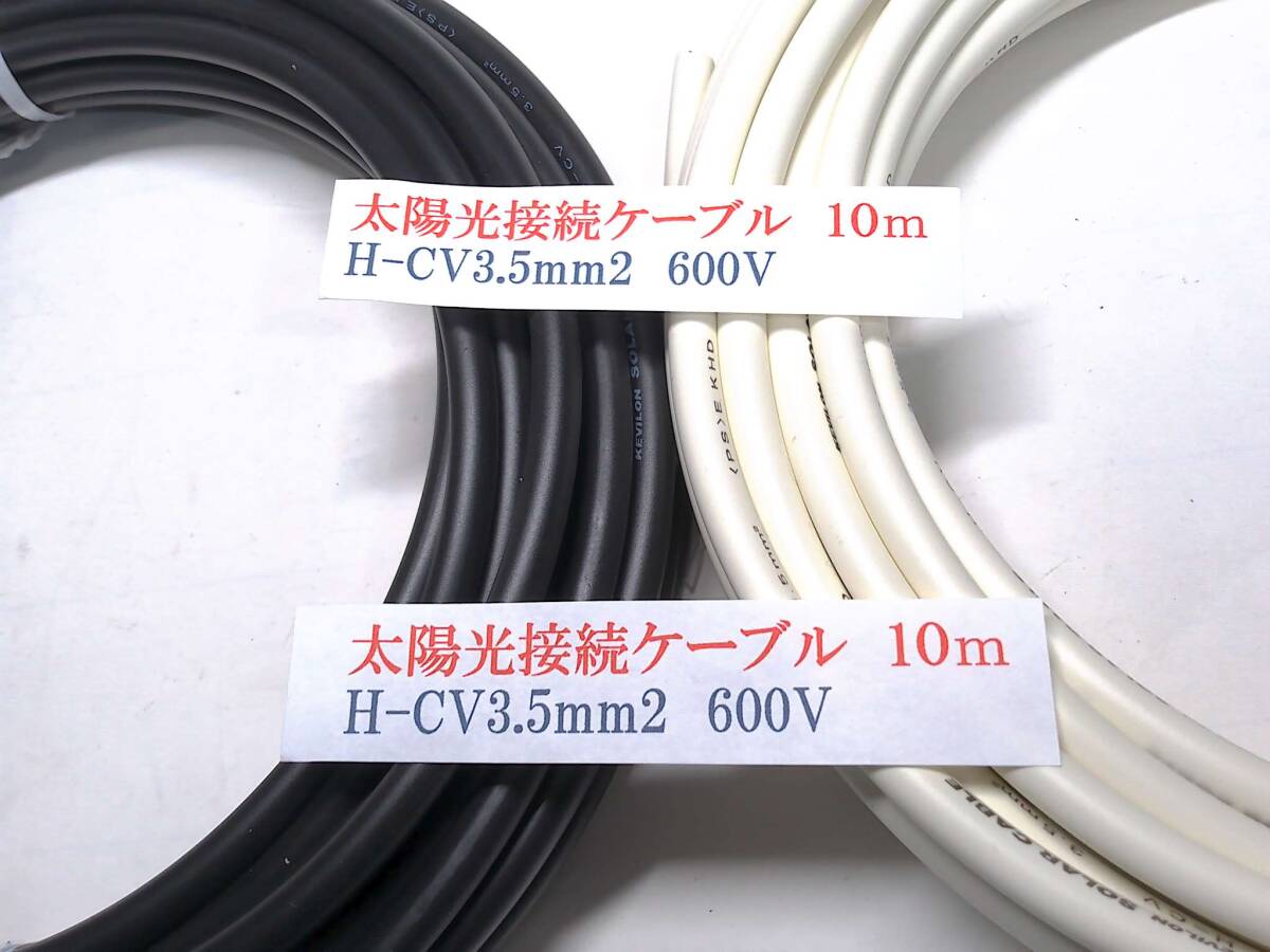 ソーラーパネル用ケーブル JET認証 3.5mm2 H-CVケーブル 黒白10m×2本 コネクターなし 未通電 |