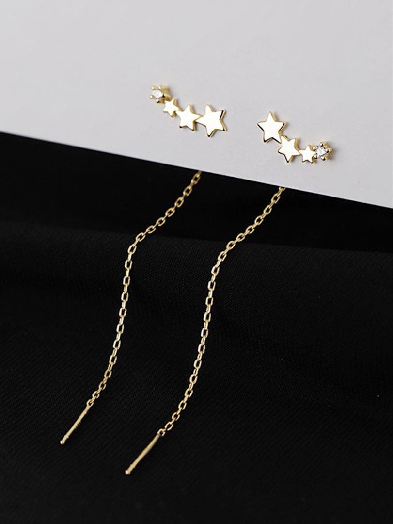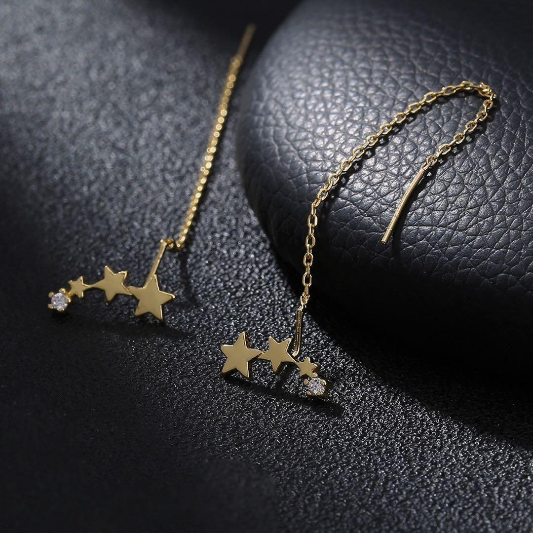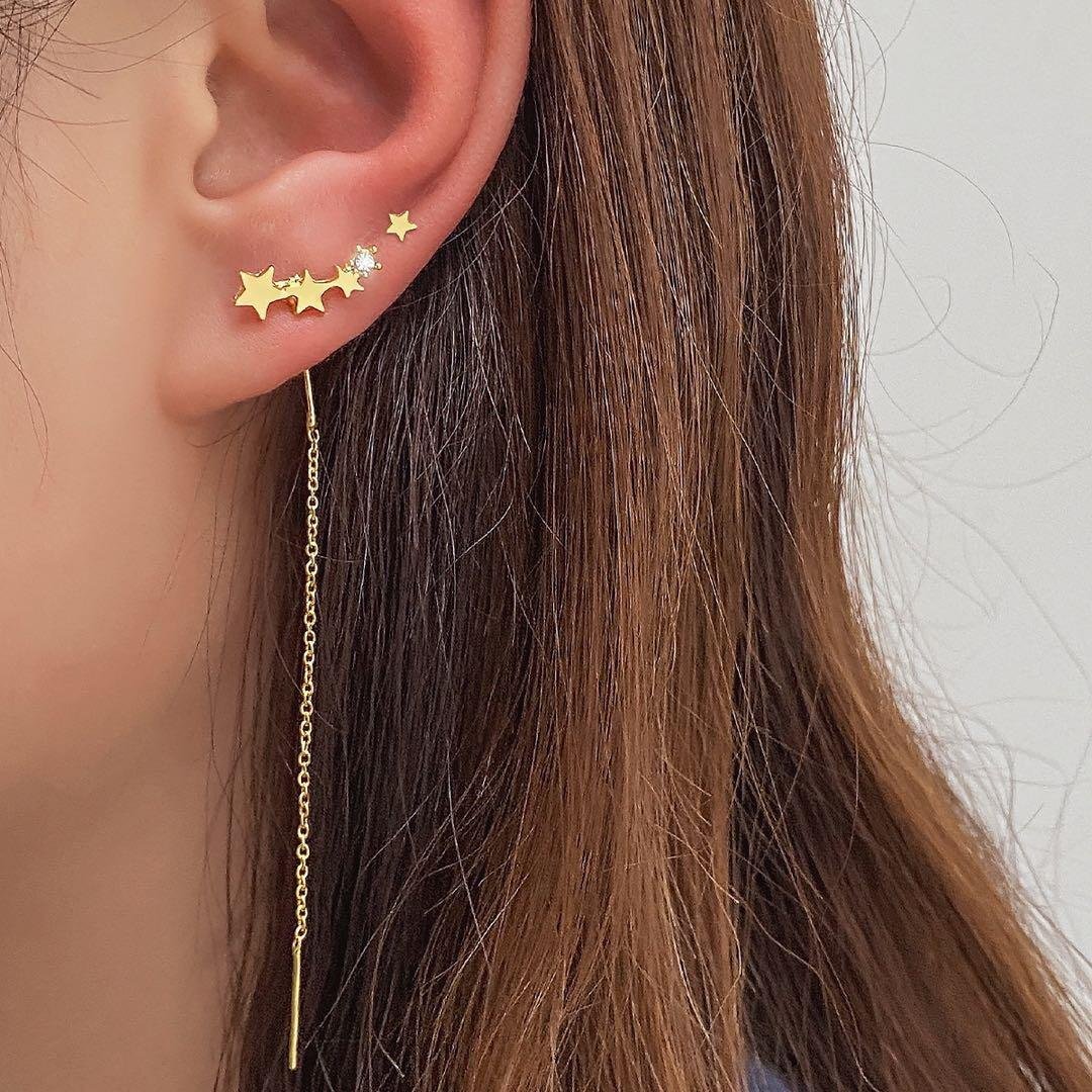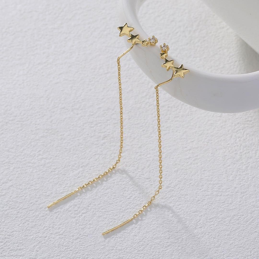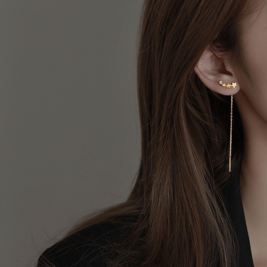 新品 3連星のチェーンピアス レディースピアス チェーンピアス 星のピアス