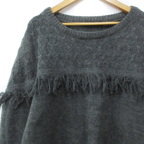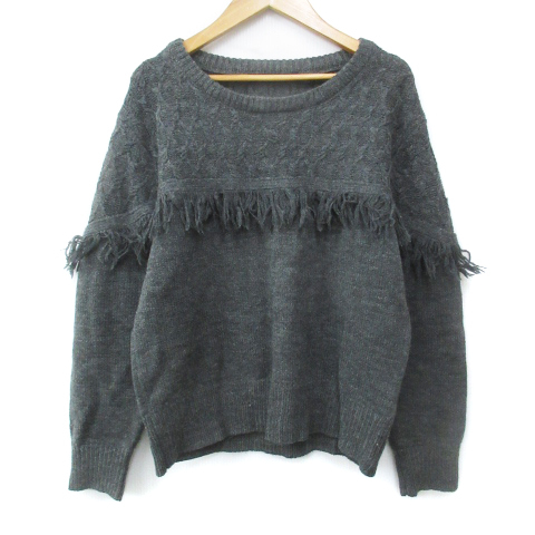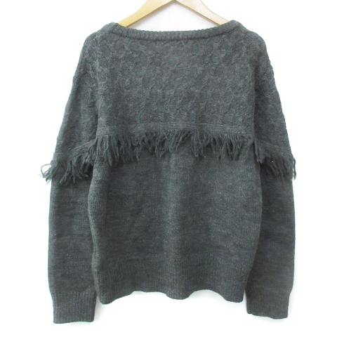 スローブ イエナ SLOBE IENA ニット セーター 長袖 ラウンドネック フリンジ 切替 グレー /FF27 レディース