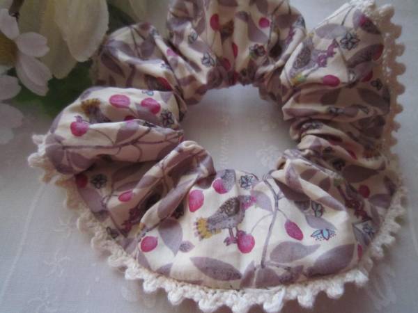★シュシュ★ リバティ■カマシア■ラベンダー系■鳥
