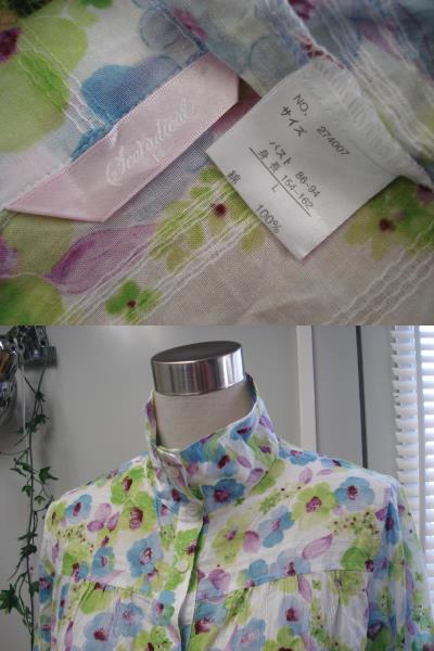 ☆花柄&裾リボン☆爽やかコットン100%ブラウス シャツL/w21
