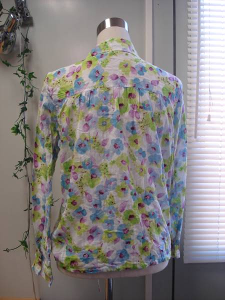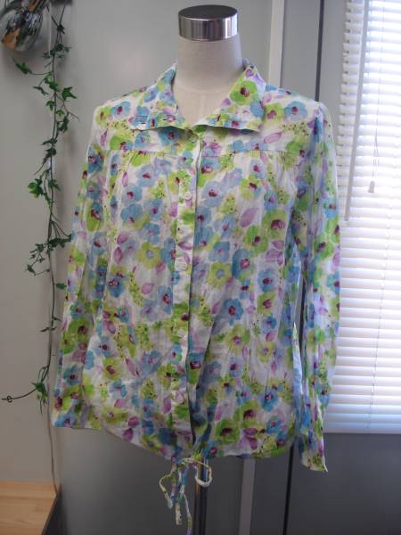 ☆花柄&裾リボン☆爽やかコットン100% ブラウス シャツ L