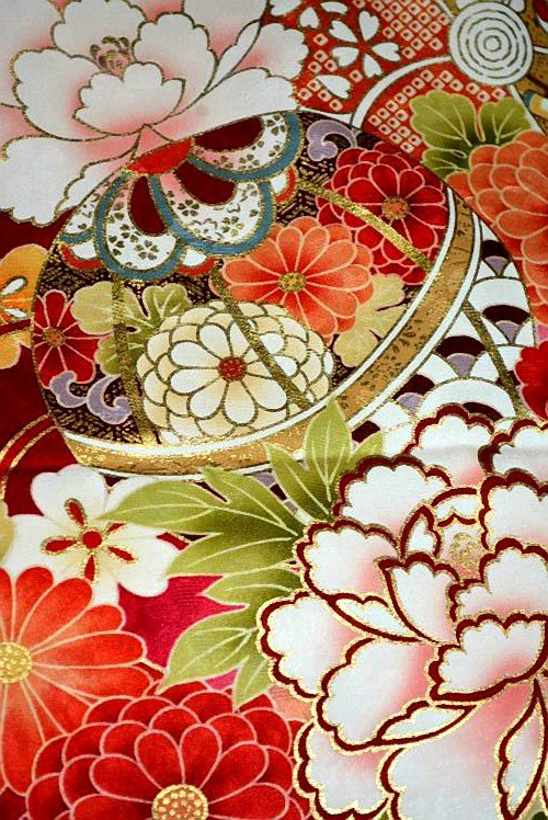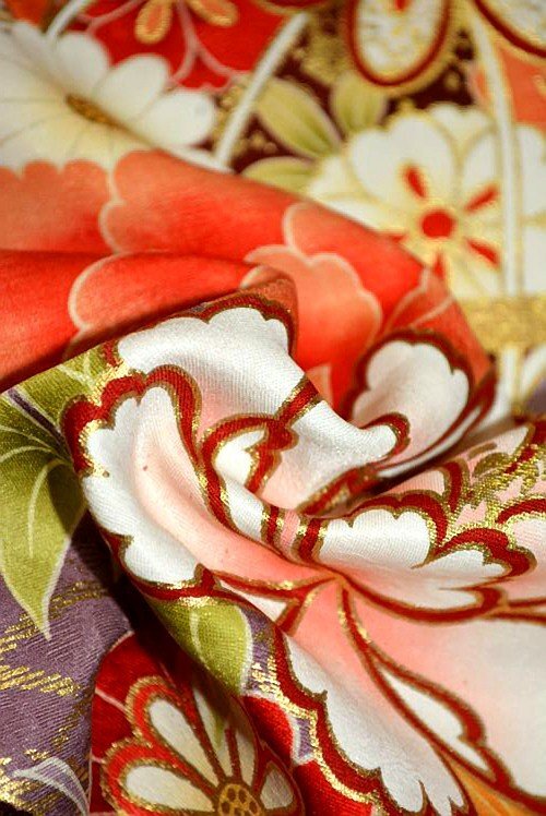 ・暈し染め 金彩 金駒シシュウ 花尽くし