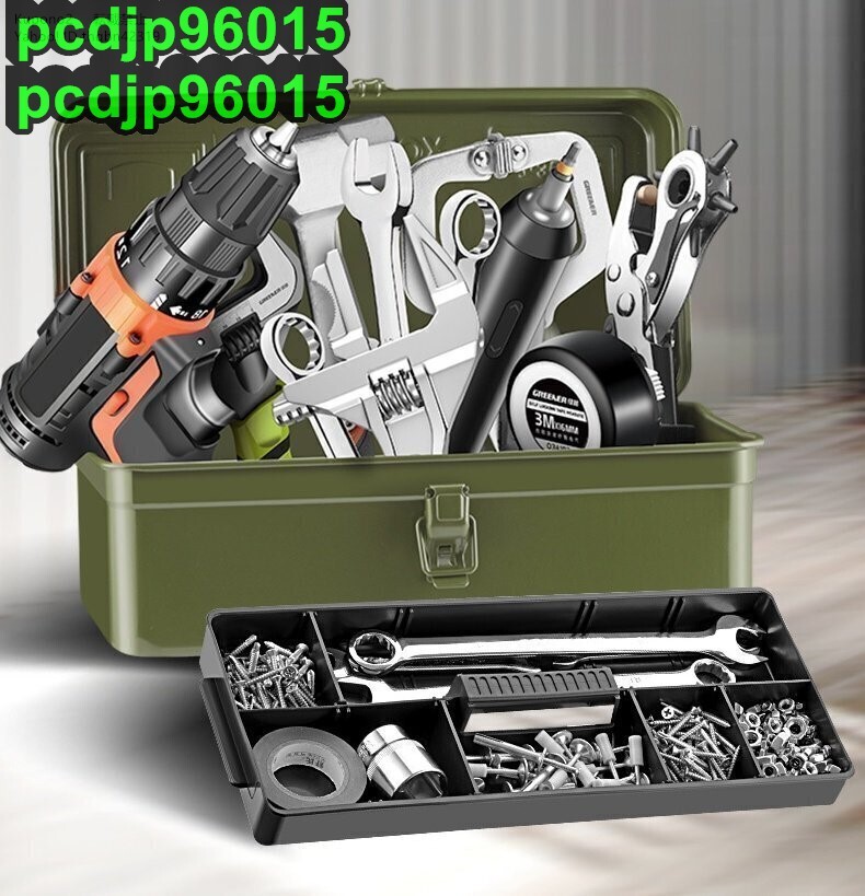 ツールボックス トランク型工具箱 ミリタリーグリーン 収納ケース 工具箱 道具入れ キャンプ