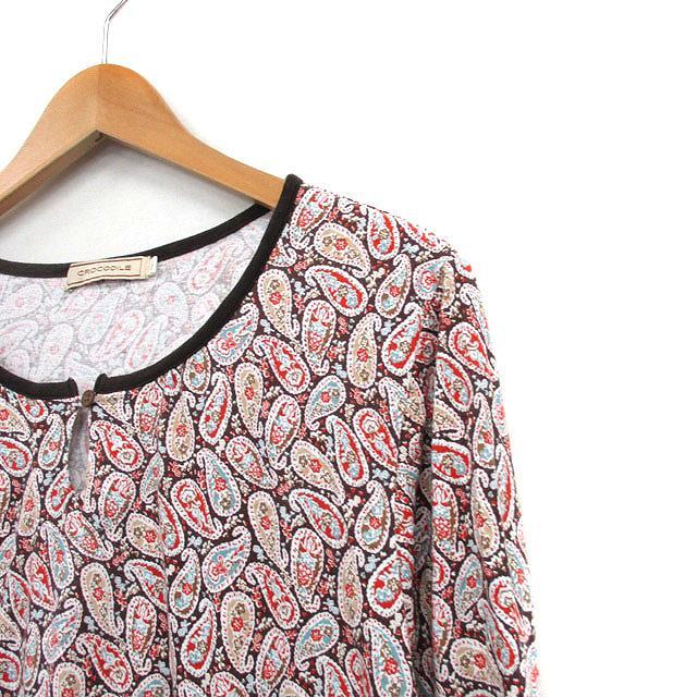 クロコダイル CROCODILE ワンピース 長袖 ミニ ペイズリー柄 LL ブラウン 茶 /KT30 レディース