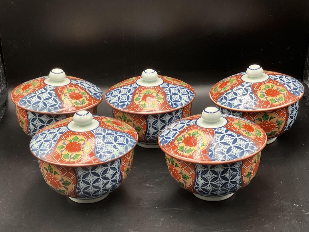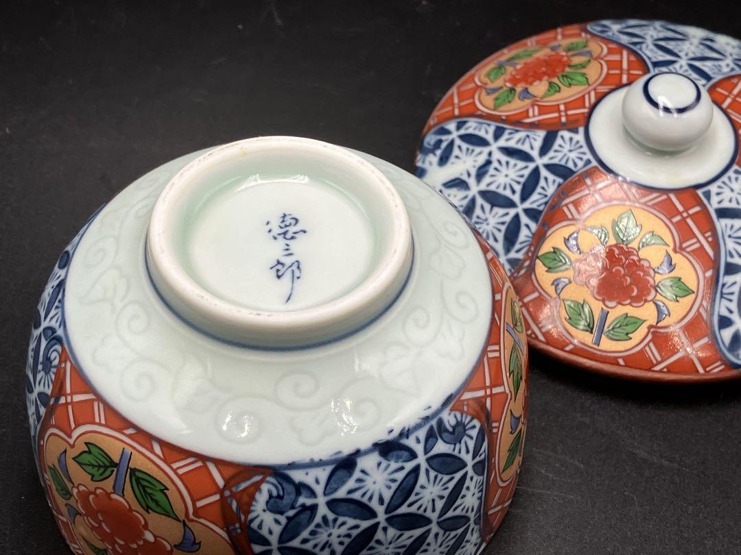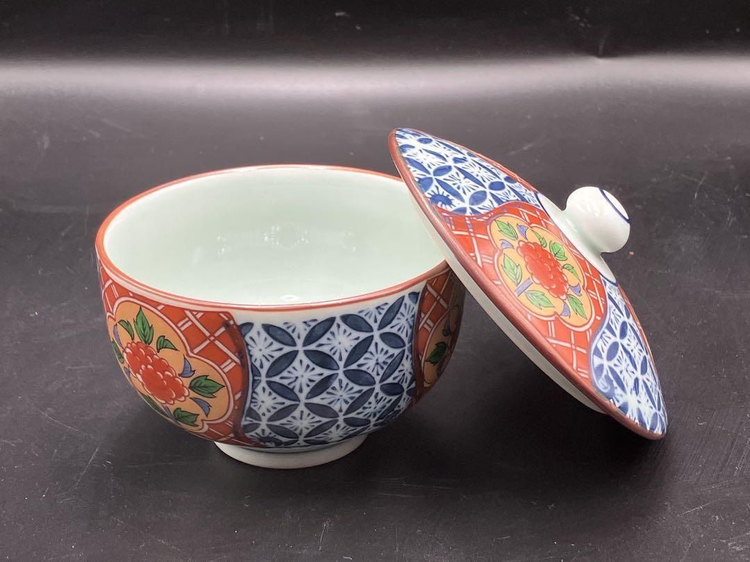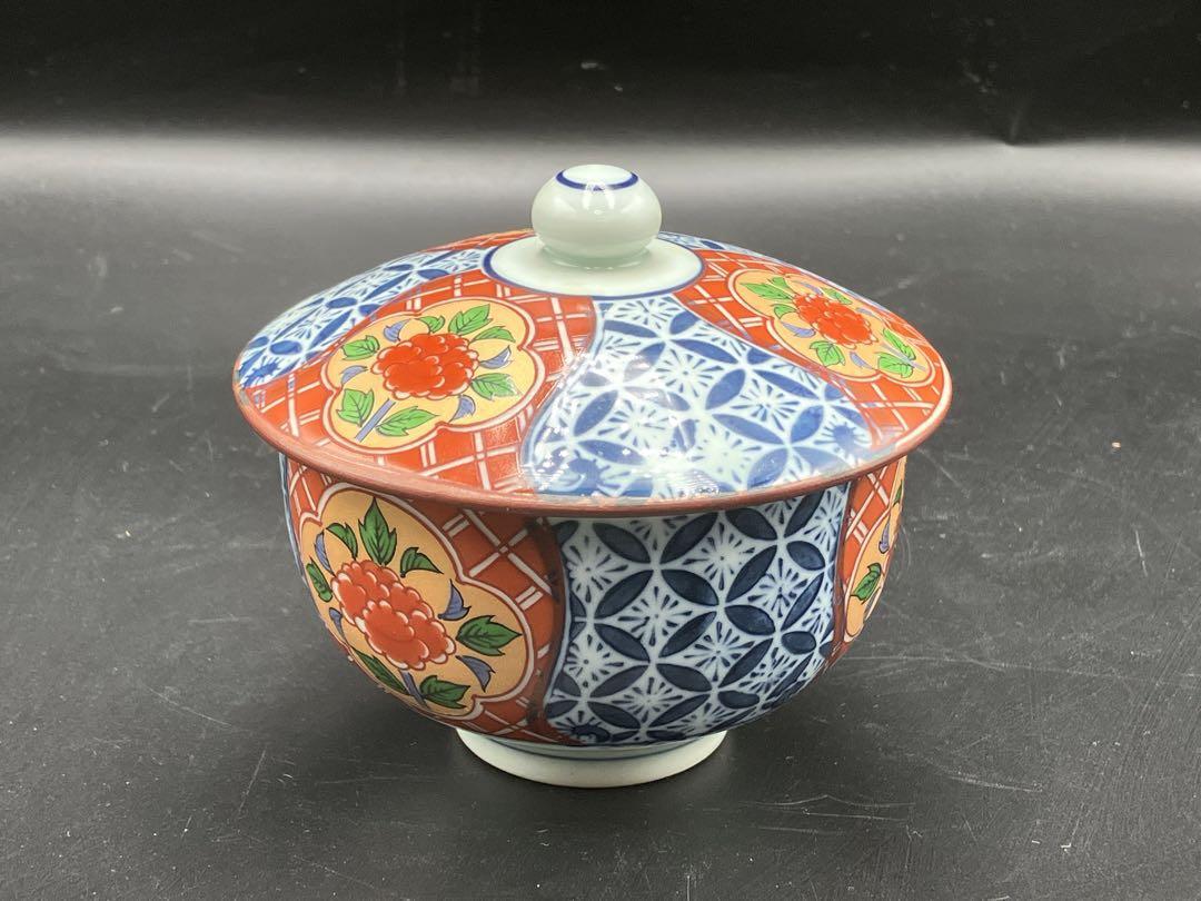 有田焼 徳三郎作 湯呑茶碗 5客セットヴィンテージ品サイズ 直径 約8.5cm 高さ 約6cm 8.5cm(蓋を含む)赤の発色が美しい有田焼(徳三郎作)の湯呑茶碗セットです。不意な来客にも、1セットあれば便利です。目立ったキズや汚れはございません。