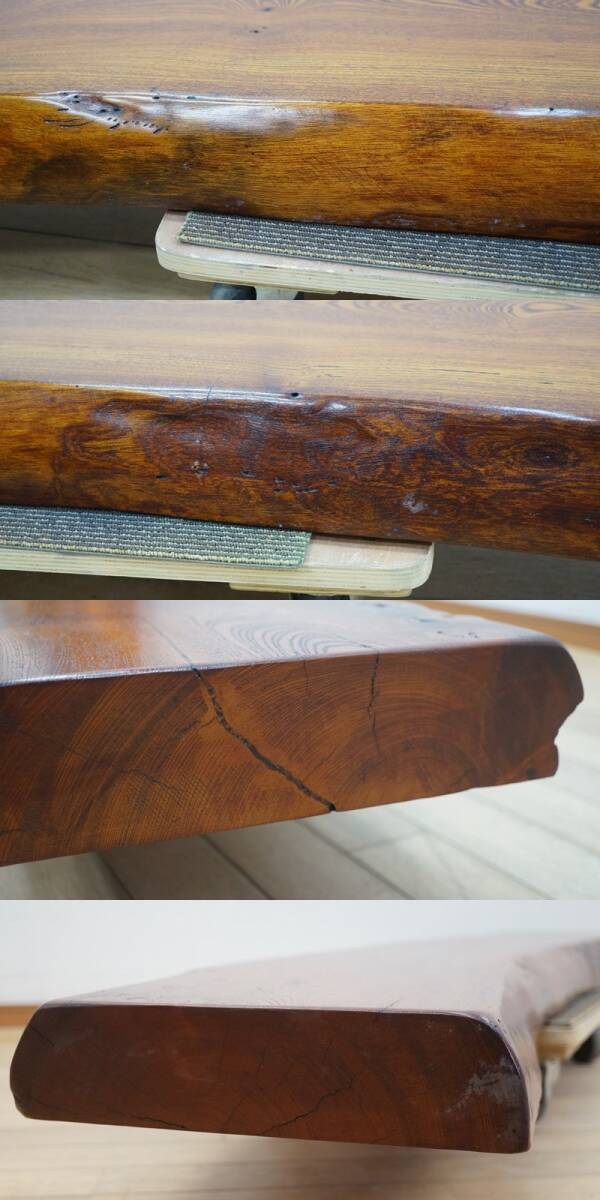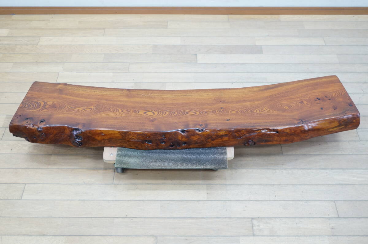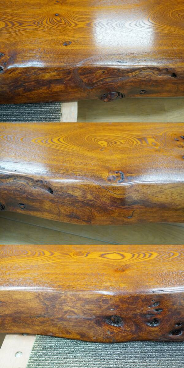 ■東ハ:【銘木】欅 ケヤキ 無垢板 一枚板 板厚約8.4㎝ 幅約162.7㎝ 奥行約44㎝ 無垢一枚板 天板木材 家具木材 天然木 ■ 銘木で知られる、欅(ケヤキ)ならではの美しい杢目をお楽しみいただける「 無垢材 一枚板 」 になります。 存在感と高級感・重量感があり、 用途に応じて脚部を組み合わせることで、 長さを活かした飾り棚板やダイニングベンチ、座敷机としてご使用いただけます。 厚みは約84mmと、無垢板の存在感を存分に感じる逸品です。 【欅 / けやき】 国内の広葉樹の中で第一の良材として古くから建築材、家具材、建具材、造作材として 幅広く用いられています。 大変美しい明瞭な木目とうっすらと褐色を帯びた木肌が特徴。 特に寺社建築に重用されたり、農家の大黒柱としても用いられており和家具の材料としては 最高級の素材です。 玉杢、牡丹杢、泡杢などの模様が現われることがあり大変希少価値の高い素材として珍重されています。 【サイズ】 (約)厚さ8.4 × 幅162.7 ×奥行44.0 cm 中古のお品となります。 付属品は写真にあるものが全てです。 使用に伴うヨゴレ、キズ・ヒビがございます。 商品画像をよくご確認の上、ご参加ください。 [管理No.24121066R1] |