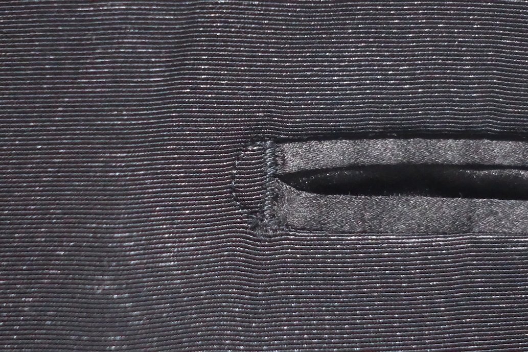 スラックスバックポケットの縁に