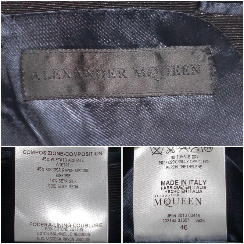 美品 ALEXANDER McQUEEN アレキサンダーマックイーン タキシード ドレス スーツ セットアップ ブラック アセテート ビスコース メンズ 46