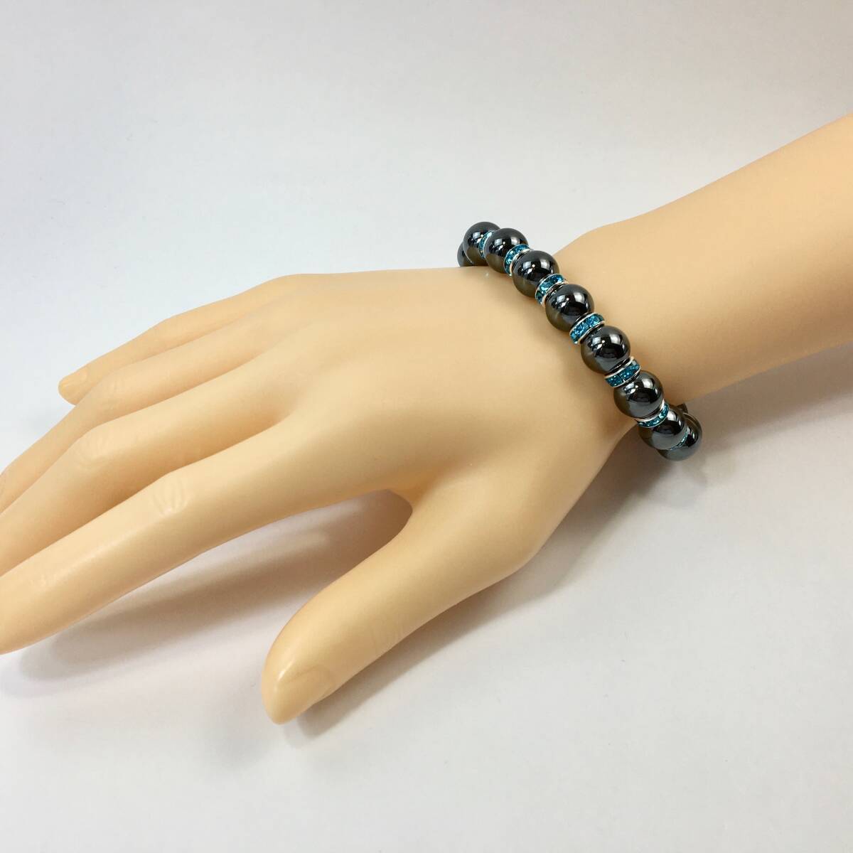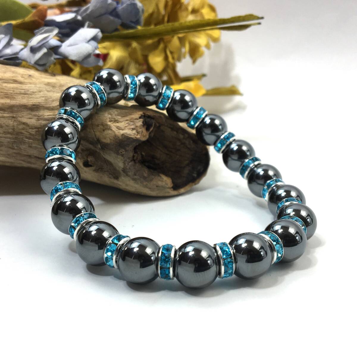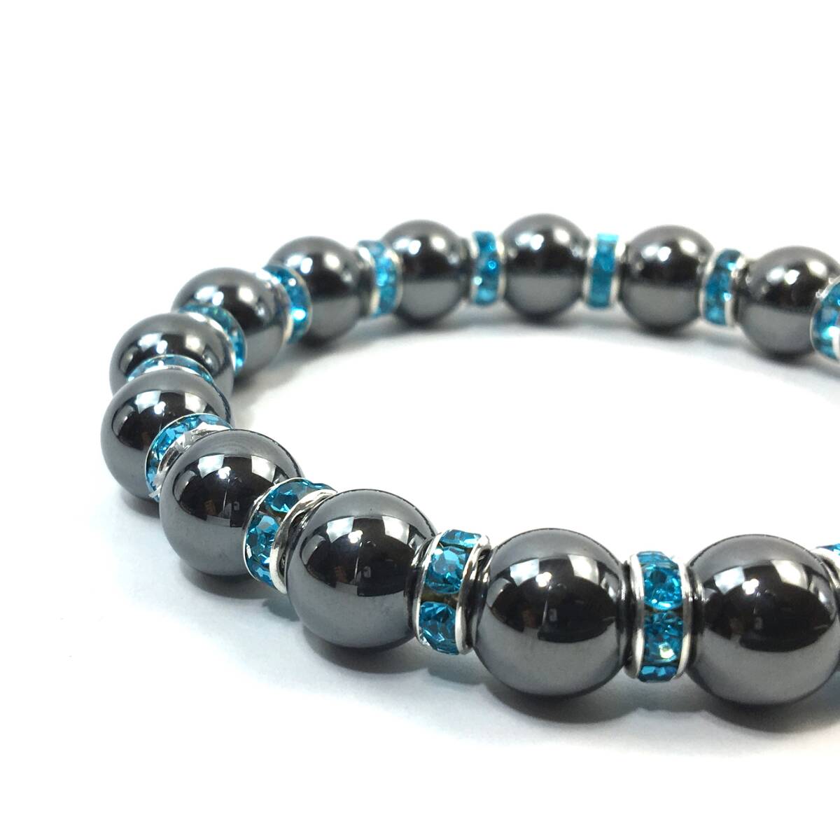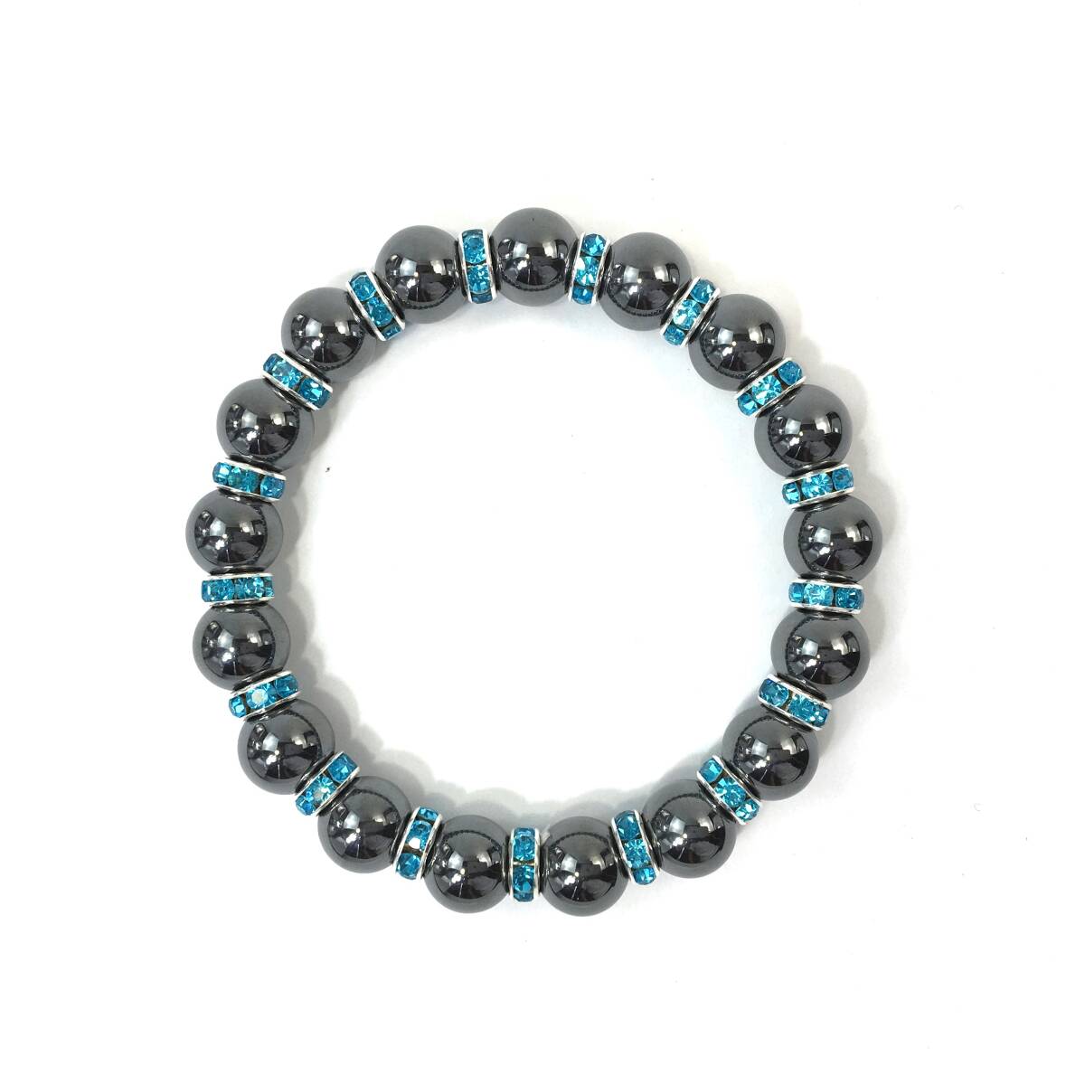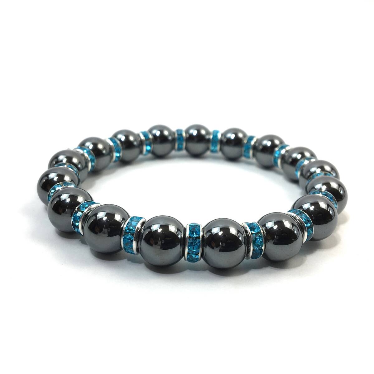 ヘマタイト  パワーストーン ブレスレット 天然石ブレス 10mm メンズ・レディース (ロンデル:ライトブルー) 開運 浄化 数珠ブレス